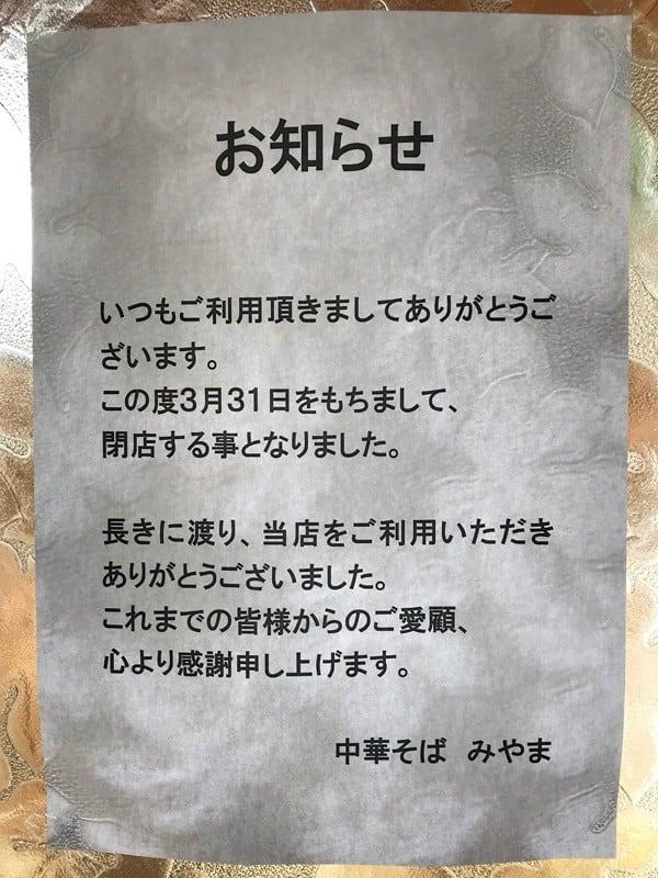 아쉽게도 미야마의 중화 소바는 이제 정말 꿈속의 음식이 되어버렸다.