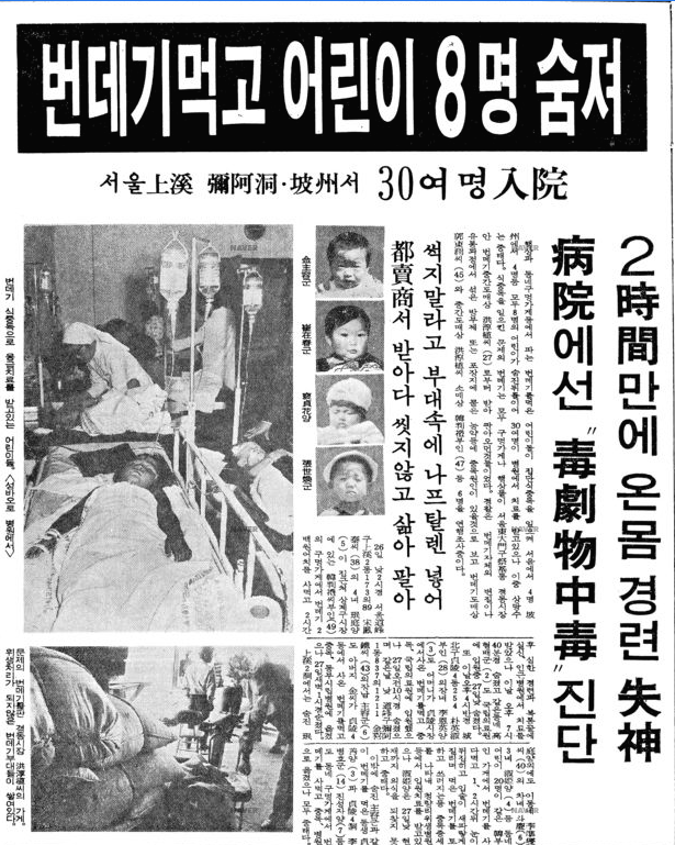 문제는 이때 사용한 포대가 맹독성 농약을 담았었던 포대였고, 잔류성 농약이 그대로 번데기에 묻어나면서 집단 식중독이라는 초대형사고가 터져버린 것이었다.