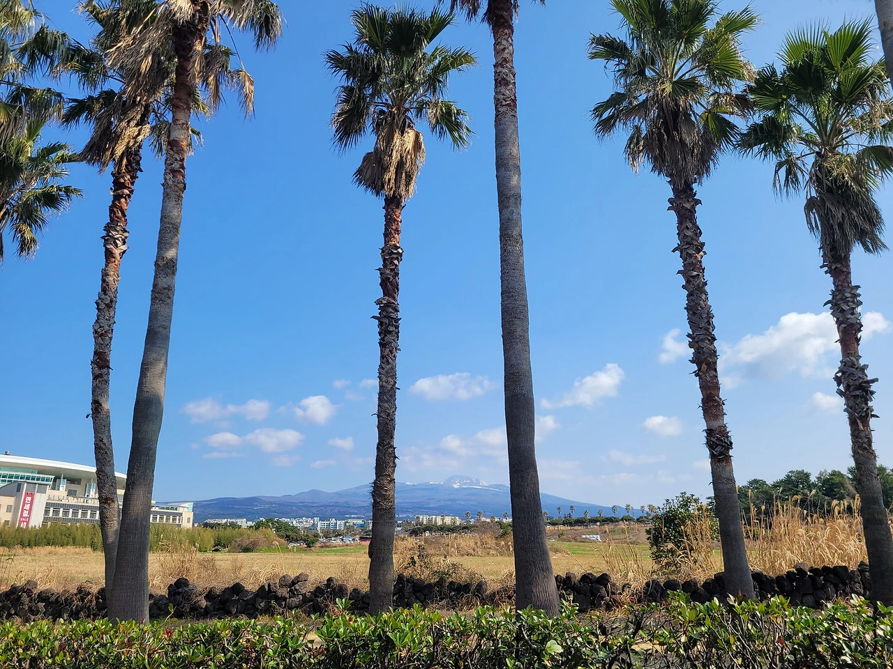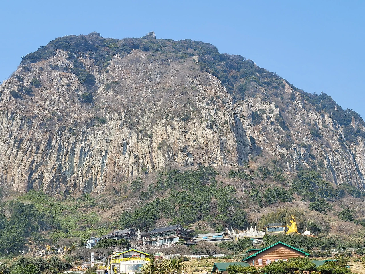 "오늘 제주도 비 온다고 했는데, 날씨가 너무 좋네~ 부처님 은덕이야."