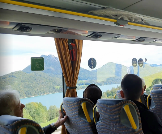 잘츠부르크에서 맞이하는 마지막 아침. 체크아웃 시간인 오전 10시에 맞춰 호스텔을 나왔다. 중앙역 물품보관소에 짐을 맡긴 후 브런치를 먹을 만한 식당이 있는지 살펴봤다. 마땅한 곳을 찾지 못해 근처 대형마트에 들어갔으나 별 소득 없이 모차르트 초콜릿만 잔뜩 구경했다. 30분 넘게 어슬렁거리다가 결국 전날에 이어 스타벅스의 문을 두드렸다. 당근 머핀과 아이스 아메리카노를 주문하고 창 밖 풍경이 정면으로 보이는 자리에 앉으니 마음이 한결 여유로워졌다. 간단하게 끼니를 때운 뒤 장크트길겐으로 가는 150번 버스를 탔다. 잘츠부르크 근방에는 장크트길겐, 장크트볼프강, 할슈타트 등 자연 경관이 빼어난 잘츠카머구트 마을이 있는데, 이번 여행에서 가장 기대되는 곳 중 하나라 들뜬 마음으로 버스에 몸을 맡겼다. 회색 지붕이 가득한 잘츠부르크 시내를 벗어나자 하늘색 호수와 작은 주택들이 모습을 드러냈다. 스위스를 연상케 하는 멋진 경치를 즐기다 보니 어느덧 장크트길겐에 도착했다.