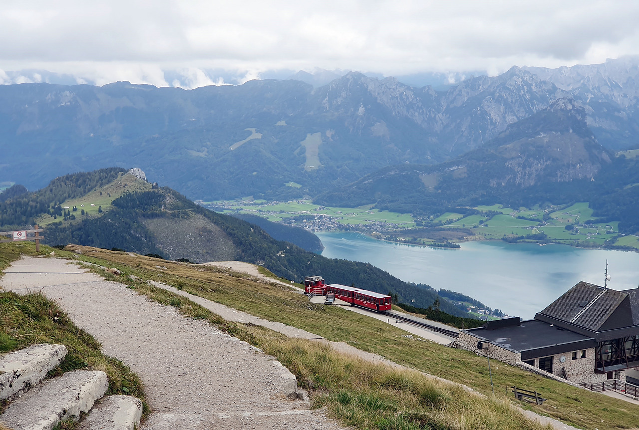 아침 겸 점심을 해결하고 탑승 시간에 맞춰 샤프베르크 산악열차가 있는 곳으로 걸어갔다. 날씨가 점차 맑아져서 오후 시간 표를 예약하길 잘했다는 생각이 들었다. 샤프베르크 산악열차는 1893년부터 운행된 증기 기관차로, 무려 120여 년의 역사를 자랑한다. '칙칙폭폭' 소리를 내며 1700m가 넘는 산 정상을 향해 올라가는데 옛날 기차의 소리가 정겹고 좋았다. 기차에서 보는 경치도 예술이었다. 알프스의 초원과 작은 마을, 그리고 청록색의 호수까지 잠시도 눈을 뗄 수가 없었다. 내 앞에서 엄마의 설명을 듣는 둥 마는 둥 덤덤하게 앉아 있던 아이도 어느 순간 자리에서 일어나 카메라를 들이대며 열심히 사진을 찍고 있었다. 멋진 풍경을 눈에 담다 보니 30분이 훌쩍 지나 기차가 종착역에서 멈췄다.
