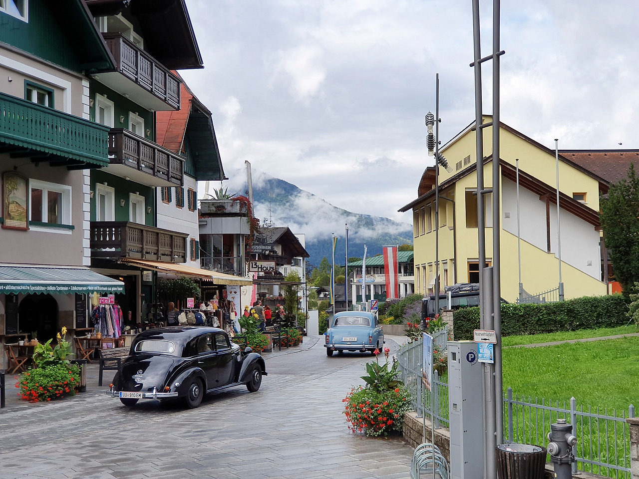 식당 외관은 작은 성처럼 생겨서 중후한 분위기였는데 내부 인테리어는 아기자기했다. 어디에 앉을까 고민하다가 비 온 뒤의 상쾌한 공기를 마시며 마을 풍경을 즐기고 싶어서 야외에 자리를 잡았다. 메뉴판을 자세히 살펴본 후 아이스 카푸치노와 카이저 슈마렌을 주문했다. 먼저 나온 커피를 들이켜고 거리 전경을 보는데, 멋진 올드카 두 대가 지나가면서 유럽 감성을 물씬 풍겼다. 고전 영화에 나올 법한 올드카가 거리를 누비는 모습을 눈 앞에서 보니 신기했다. 잠시 후 컷팅된 팬케이크에 과일과 잼이 곁들여진 카이저 슈마렌이 나왔다. 슈가파우더가 뿌려져 있었는데 너무 달지 않고 맛있었다. 계란이 많이 들어간 카스테라를 꼬불꼬불하게 만들어서 잘라먹는 느낌이었다. 오스트리아의 작은 마을에서 '황제의 디저트'로 불리는 전통 음식을 먹으니 현지인과 동화된 것 같았다. 고개를 돌려 밖을 쳐다보니 하늘은 언제 비가 왔냐는 듯 파랗게 변해 있었다.