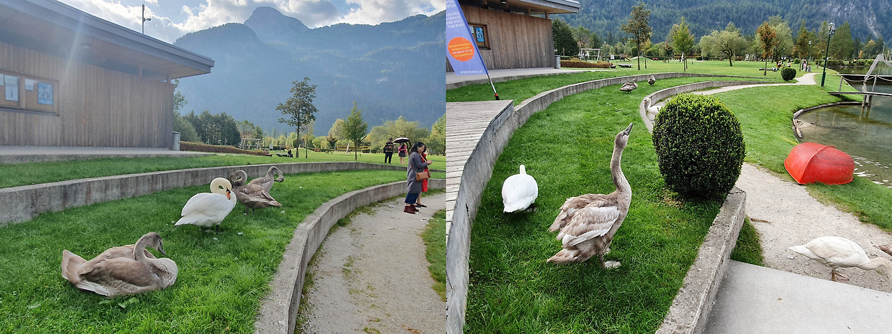 10시에 체크아웃을 한 후 숙소 프런트에 캐리어를 맡기고 seecafe 옆 놀이터로 향했다. seecafe에 다다르니 물가를 나온 오리와 백조들이 길을 가로막았다. 사람이 오든 말든 신경쓰지 않고 덤덤하게 마을을 돌아다니는 모습이 인상적이었다. 선착장에서는 한 아저씨가 공구와 나무판자를 들고 나룻배를 제작하고 있었다. 전날 탔던 배를 실제로 만드는 과정을 보니 신기했다. 장인정신을 발휘하는 아저씨의 모습을 보면서 무엇이든 뚝딱 만들어지는 건 없다는 걸 새삼 깨달았다. 남이 이룬 성과만 보지 말고, 그 결과를 이루기까지 필요한 숨은 노력에도 관심을 기울여야겠다고 생각했다.