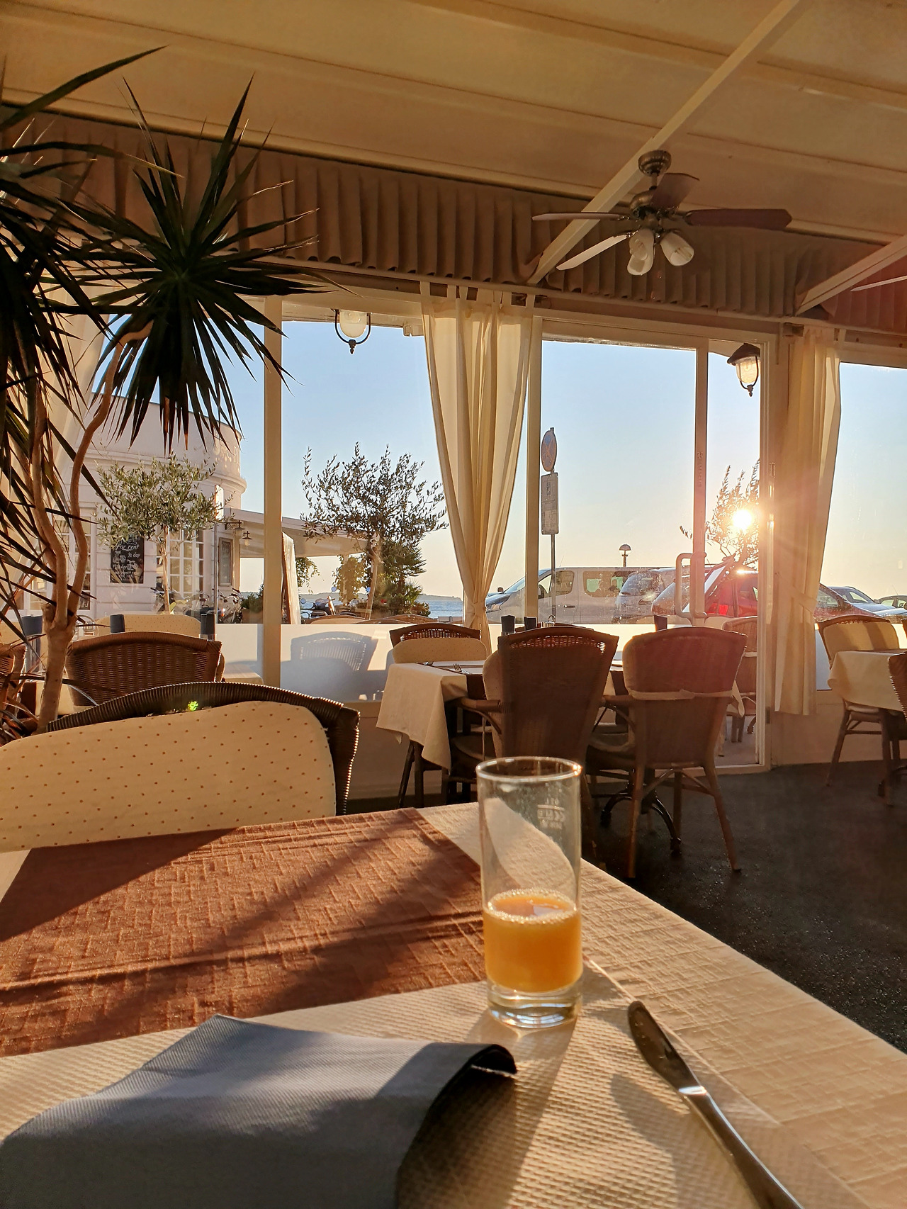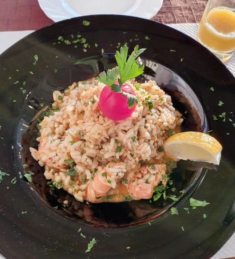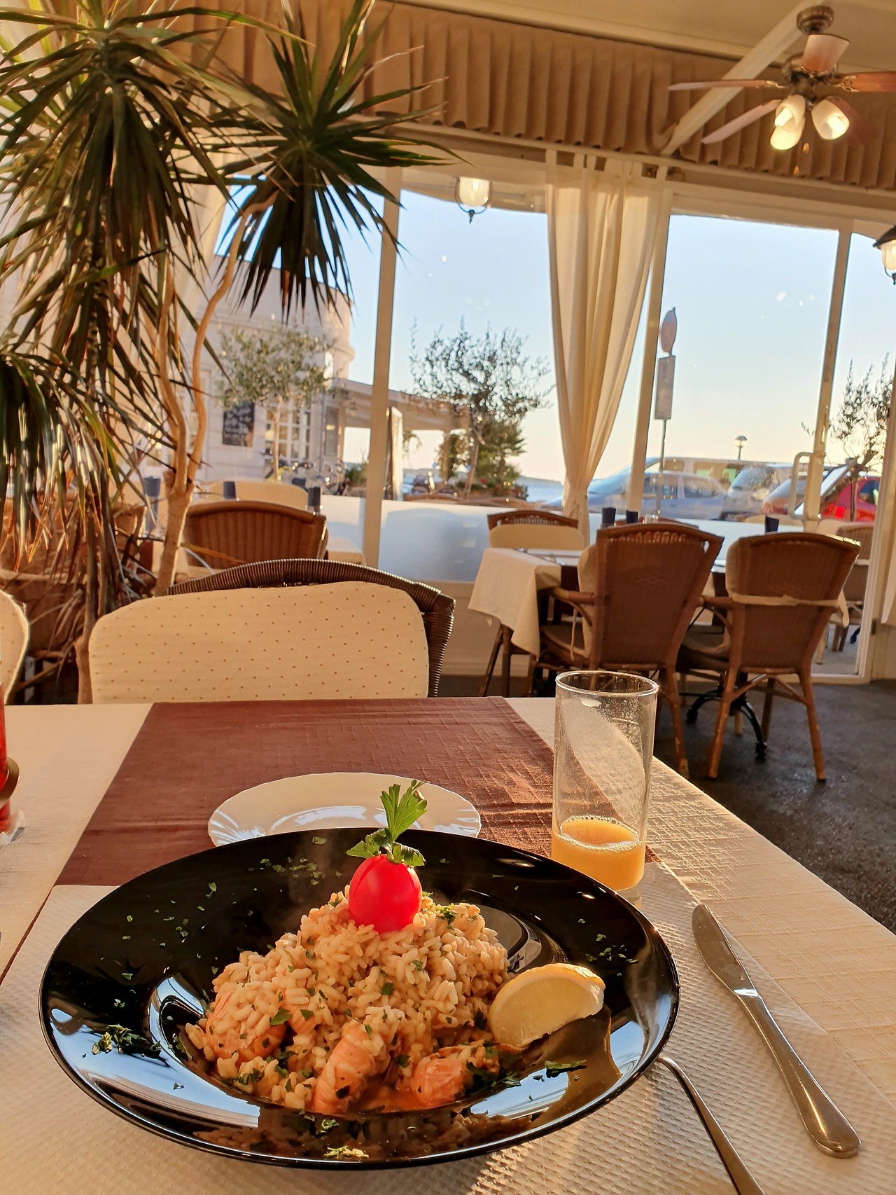 광장을 지나 바다와 맞닿은 곳에 이르니 전망 좋은 레스토랑들이 즐비했다. 어디를 갈지 고민하다가 깔끔하고 고급스러운 인테리어의 Ribja Kantina를 선택했다. 바닷가에 왔으니 해산물 요리를 먹어야겠다는 생각에 새우 리조또를 주문했다. 음료로 시킨 오렌지 주스는 생 오렌지를 착즙해서 신선하고 달콤했다. 뒤이어 통통한 새우가 들어간 새우 리조또가 나왔는데, 간만에 맛있는 쌀을 먹어서 기분이 좋았다.