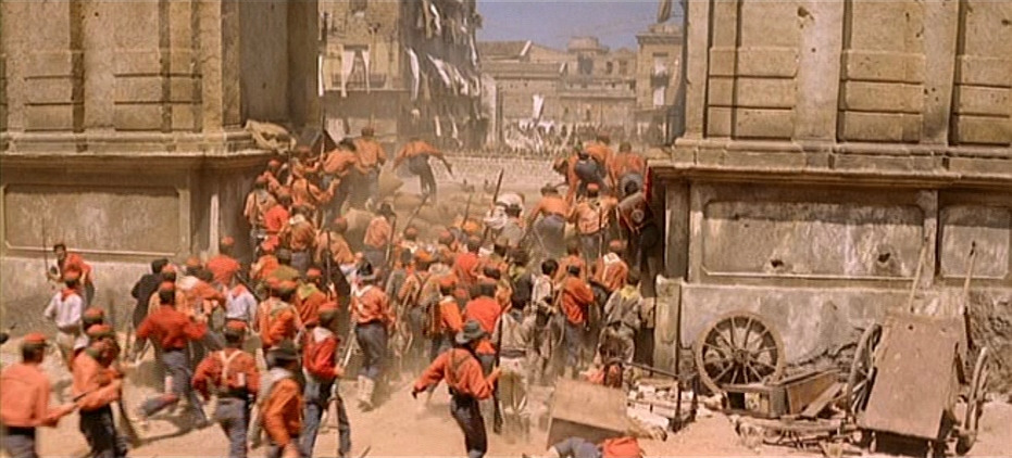 탄크레디가 참전한 이탈리아의 통일전쟁은 국왕군과 가리발디의 붉은 셔츠단의 전투를 거대한 프레임에 담아낸다. 처음 보았을 때 장관에 가까운 전투 장면은 곧 도시 각지에서 일어나는 비인간적인 행태를 비추기 시작하는데, 국왕군이 붉은 셔츠단 포로를 세워놓고 순식간에 총살을 하거나, 이에 분개한 시민들이 귀족들에게 복수하는 과정들이 가감 없이 담긴다. 이 전쟁에는 영웅도 없고, 위대한 장군도 없으며, 훈련이 되지 않은 두 군대가 전략도 없이 갈팡질팡하면서 싸우고 있을 뿐이다.