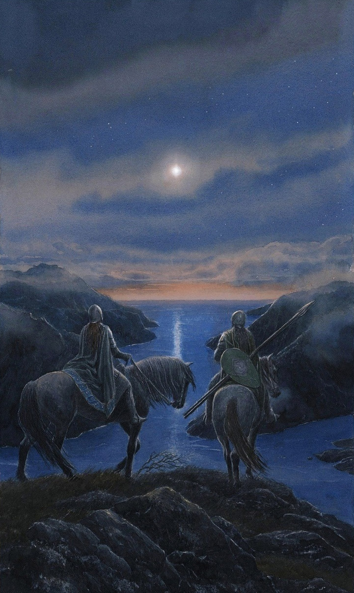 앨런 리의 삽화, (左) 새벽별 에아렌딜, (右) 쉘롭 굴의 프로도 [출처: Tolkien Gateway, The Art of Alan Lee and John Howe]