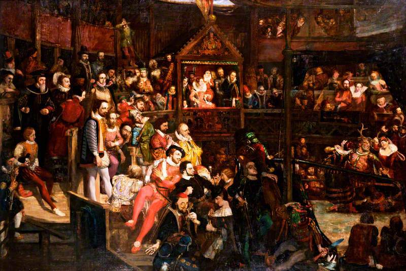 데이빗 스콧 作, 〈글로브 극장에서 '윈저의 즐거운 아낙네'를 관람하는 엘리자베스 여왕〉(1840) [출처: Art UK]
