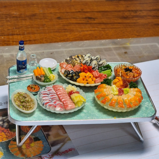 미니어처 공방마다 운영하는 클래스의 종류나 커리큘럼은 다양해. 내가 신청한 원데이클래스는 음식 미니어처를 배울 수 있는 클래스. 다양한 음식으로 한 상을 가득 채우기 때문에 대략 8시간 정도 소요되는 긴 수업이지. 두 시간 안에 체험이 끝나는 보통의 원데이 클래스와는 좀 다르지? 물론 가구 하나, 음식 하나를 완성해 보는 짧은 미니어처 클래스도 있어. 내가 이왕 체험해 보는 거 끝장을 보자며 겁도 없이 긴 시간 클래스를 신청했을 뿐.