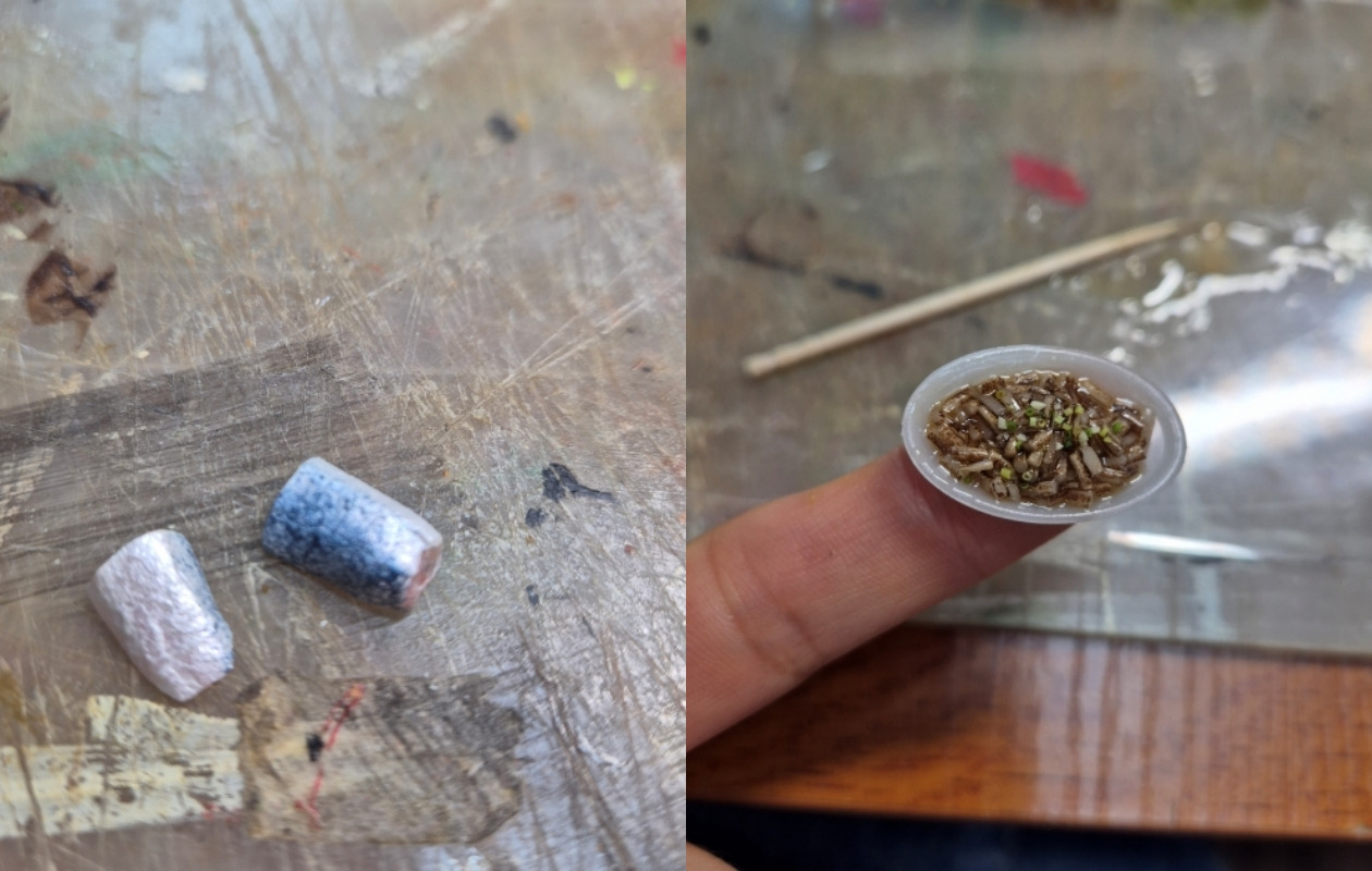 실제로 선생님도 샘플을 제작하실 때 실물 사진을 여러 장을 비교해 보고, 여러 가지 방법으로 제작해 보며 실물과 가장 비슷하게 완성하신다더라. 관찰력이 중요한 공예구나, 평소 관찰력이 좋은 사람들이 미니어처를 잘하겠다는 생각이 들었어.