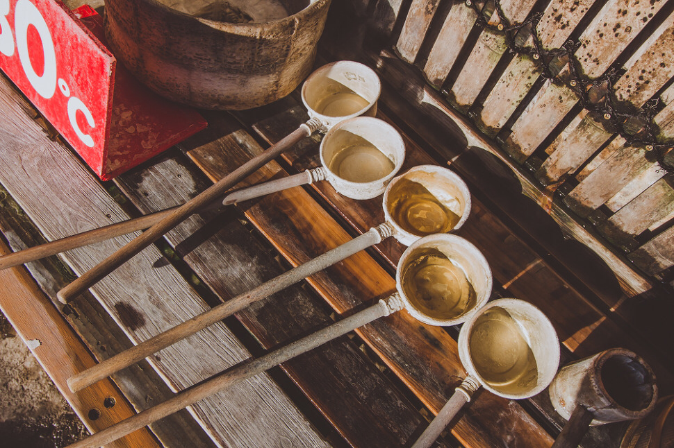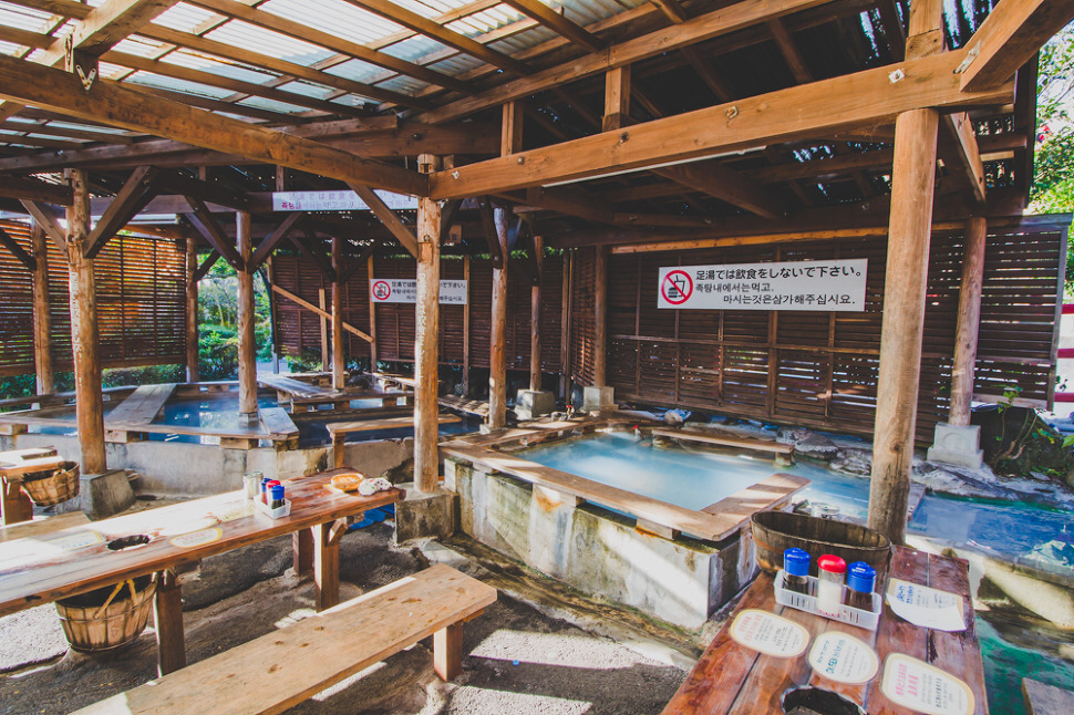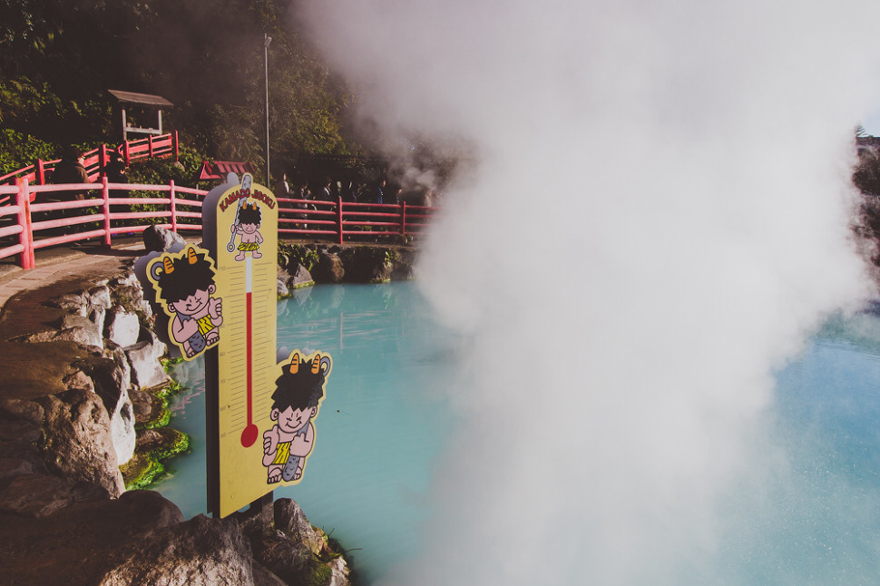 곳에는 몇 개의 원천이 있는데, 뿜어내는 물의 온도와 성분에 따라 온천의 물빛이 다르다. 붉은 진흙을 토해내는 것 같은 곳도 있고, 코발트빛 푸른 물, 뽀얀 우유같은 석회물까지 색색깔의 온천이 참 예쁘기도 하다. 이곳에서는 그 모습에 따라 바다지옥, 피지옥, 스님지옥같은 이름을 붙여뒀다. 직원이 보여주는 짧은 쇼는 온천을 구경하는데 작은 재미를 더한다. 담배를 뻐끔뻐끔 태우다가 그 연기를 용출 구멍에 대고 불면 순식간에 하얀 연기가 머리 꼭대기까지 피어오르는 게 바로 그것.