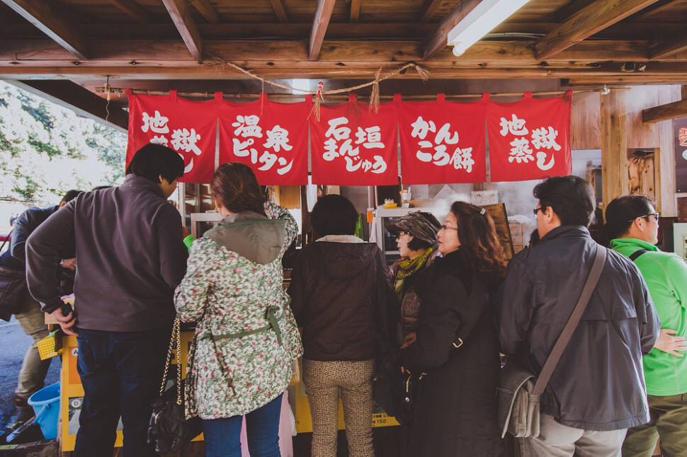 예전에는 봄가을에 열리는 대제 때 가마도지옥의 수증기로 지은 밥을 신에게 바쳤다고 한다. 증기로 지은 밥을 맛볼 수는 없지만 온천 증기로 찐 달걀인 온천달걀, 온센다마고는 언제나 맛볼 수 있다. 맛있게 먹으려면 노른자에는 쯔유를, 흰자에는 소금을 뿌려야한다. 계란을 먹다 목이 막힌다는 엄마의 말에 재미있는 것을 보여주겠다며 구슬 사이다로도 불리는 일본 사이다 라무네를 한 병 사왔다. 뚜껑을 열고 손바닥으로 탁 내리쳐 구슬을 떨어트리는 모습을 보여주니 신기하다며 연신 박수를 치는 엄마. 기분이 좋아진 엄마 덕에 계란을 한 알 더 얻어먹었으니 손바닥 얼얼해진 건 티내지 않는 걸로.