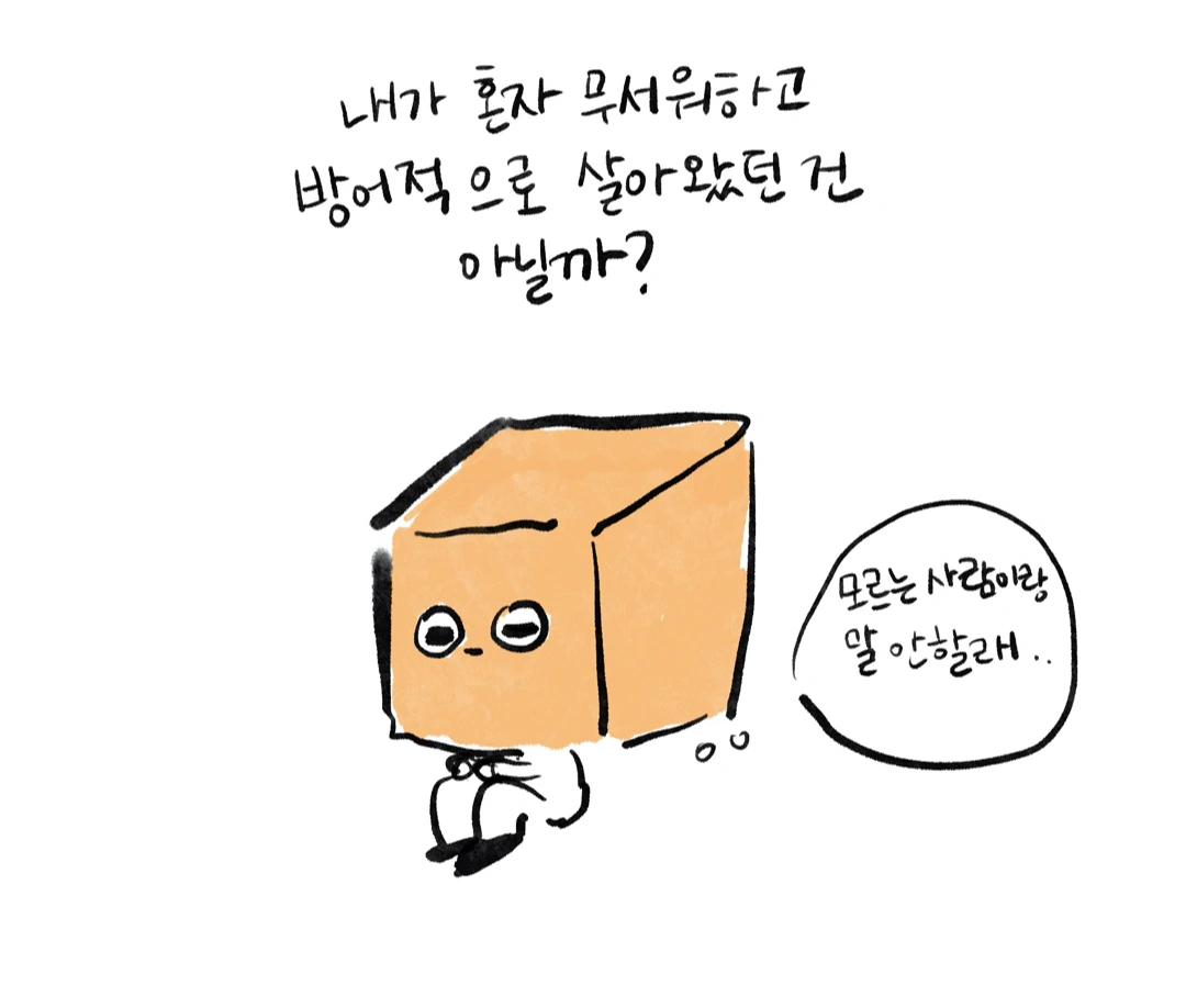 남과의 인연을 만드는 데 너무 두려워하는 마음은 어쩌면, 나를 지키고 싶어하는 내 마음 속 두려움일지도 모른다. 그 호의를 믿고 상대를 믿었는데 사실은 그런 사람이 아니면 어떡할까. 상대의 도움을 받고 그가 그것을 빌미로 나에게 다른 요구를 하면 어떻게 대응을 해야 하나. 낯선 새로운 관계를 만들었을 때 생겨나는 비용을 감당할 수 있을까, 하는 두려움.