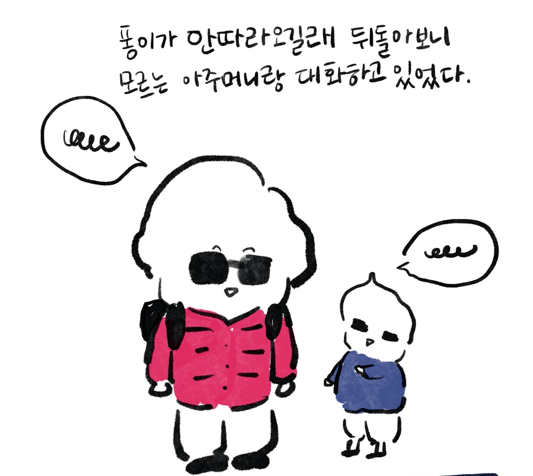 퐁이는 두려움을 모른다. 일단 까르르르 웃으면서 들이대본다. 아직 모든 것이 새것이어서 한번도 다친 적 없는 아이의 용감함일지도 모르지만, 같은 조건의 새인간 (다른 어린이)들과 비교해도 타고난 서슴없음이 있다.
