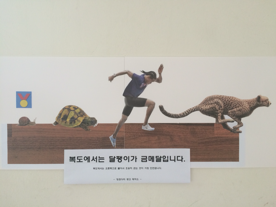 - 선생님이 생각한 건 '복도에서는 달팽이가 금메달입니다.'야.
