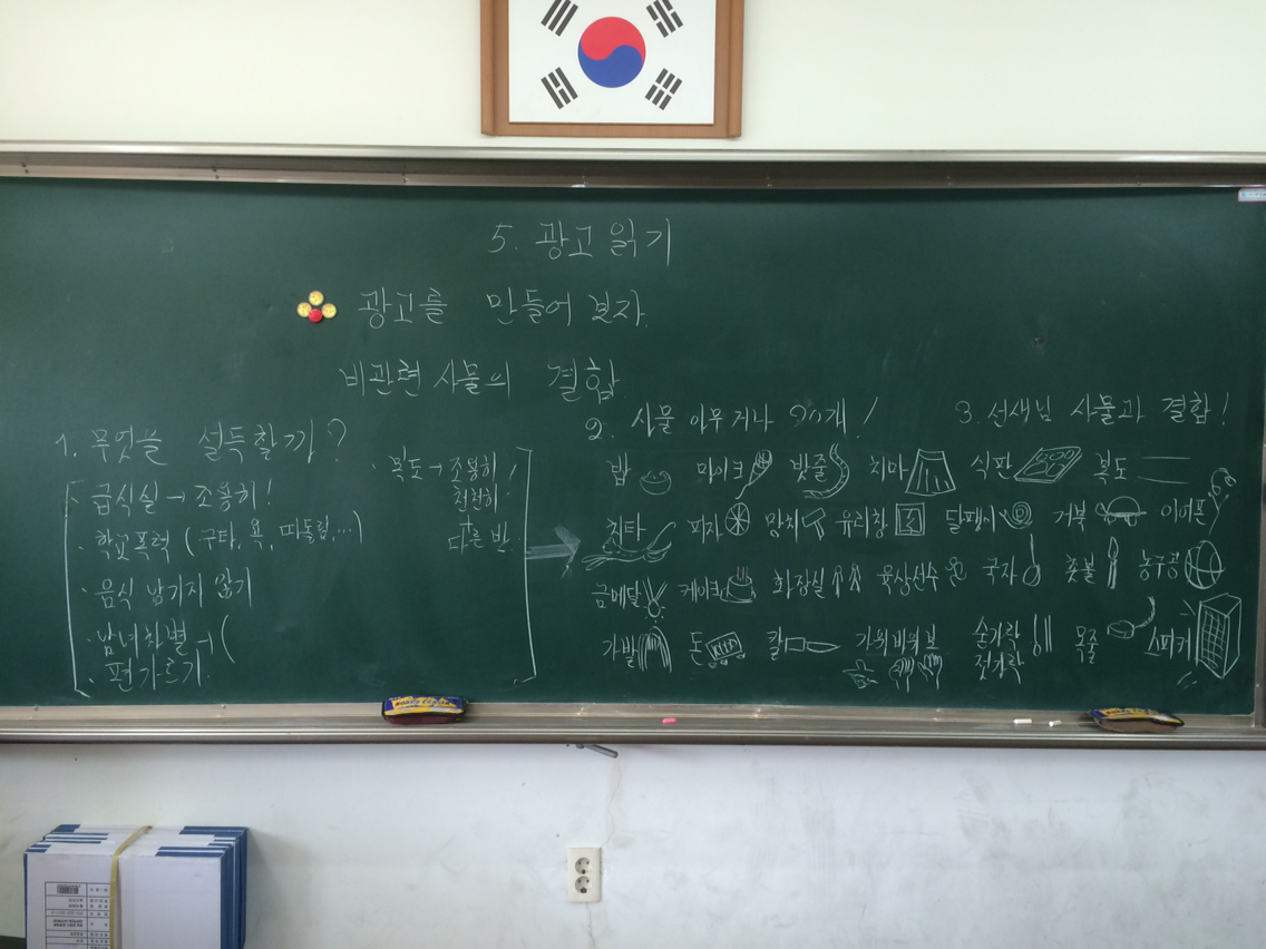 - 각자 조합해서 광고 이미지를 만들어 봐. 그리고 그 안을 들고 나와서 선생님과 의논하자.