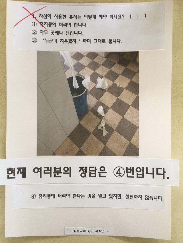 : 복도에서 조용히, 천천히(이건 내가 냈다.)