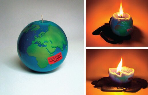 : 비관련 사물의 결합이 사용된 광고들을 몇 개 예시로 보여준다.
