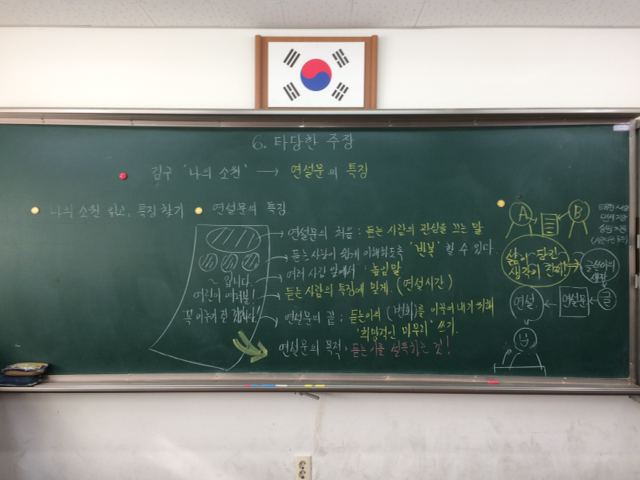 - 연설을 하려면-연설문을 써야 하고-연설문은 하나의 글이고-글은 글쓴이의 생각이 담기는 것이고-삶이 담긴 생각이 진짜!니까 우리 삶을 아름답게 가꾸어 나가야 하는거야.