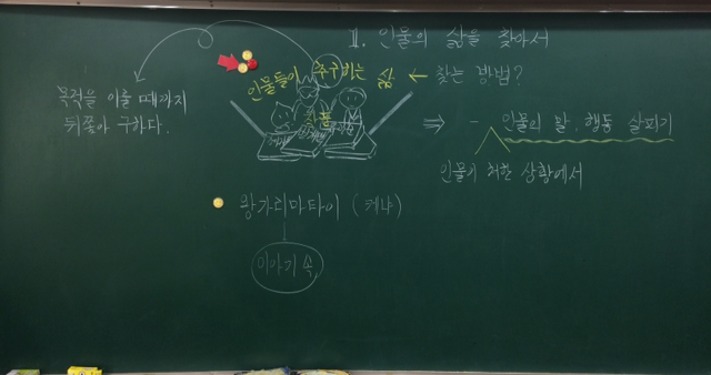 - 이야기의 사건을 정리하고 왕가리마타이가 처한 상황을 살피고, 그녀의 말과 행동을 통해 추구하는 삶을 찾는 활동은 다음 시간에 해보겠습니다.