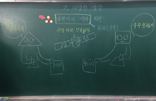 - 칠판에 그려진 그림을 보고 알 수 있는 것은 무엇일까?(이 발문을 했으면 더 좋았겠다.-_-;;)