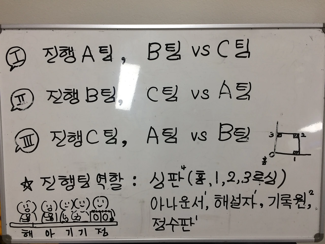 - A, B, C 팀과 진행은 그대로 하되, 아이들과 협의하여 경기의 진행방식을 결정한다.