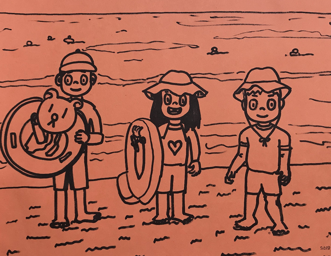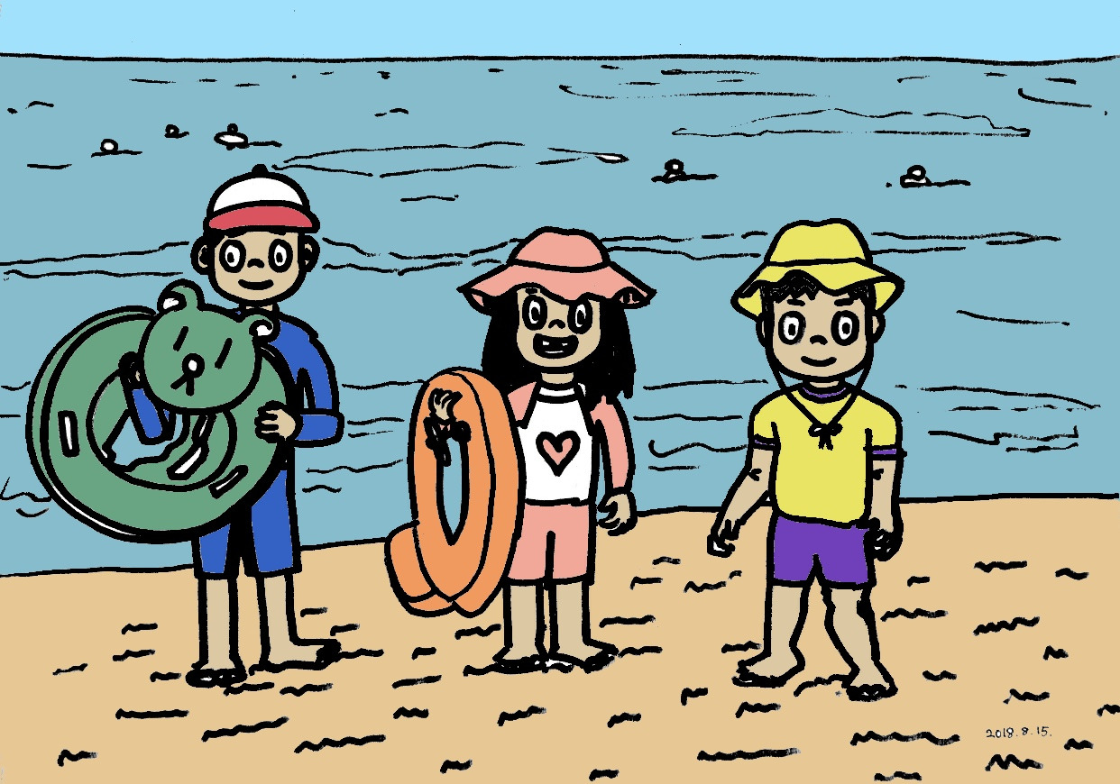 주, 겸, 윤, 온 모두 데리고 해운대 해수욕장으로 출발!