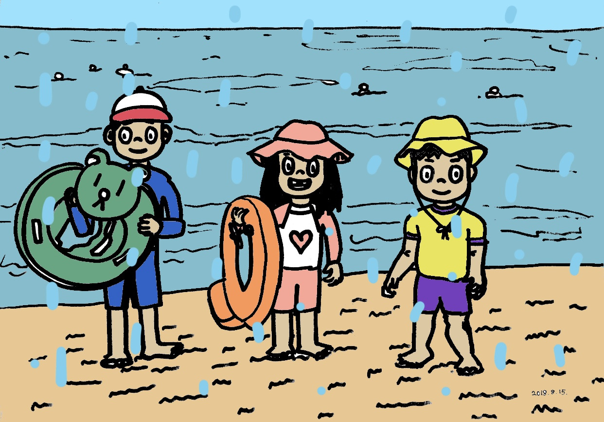 “봐봐. 바다에 빗방울이 막 떨어지지!”