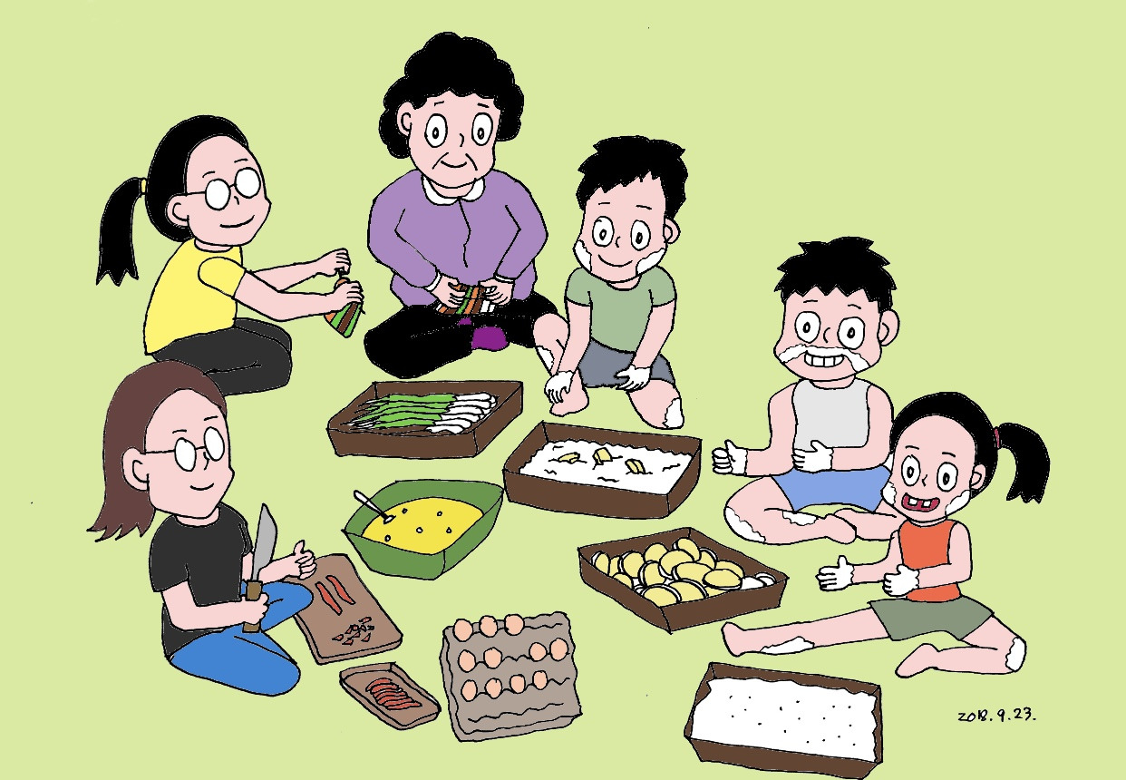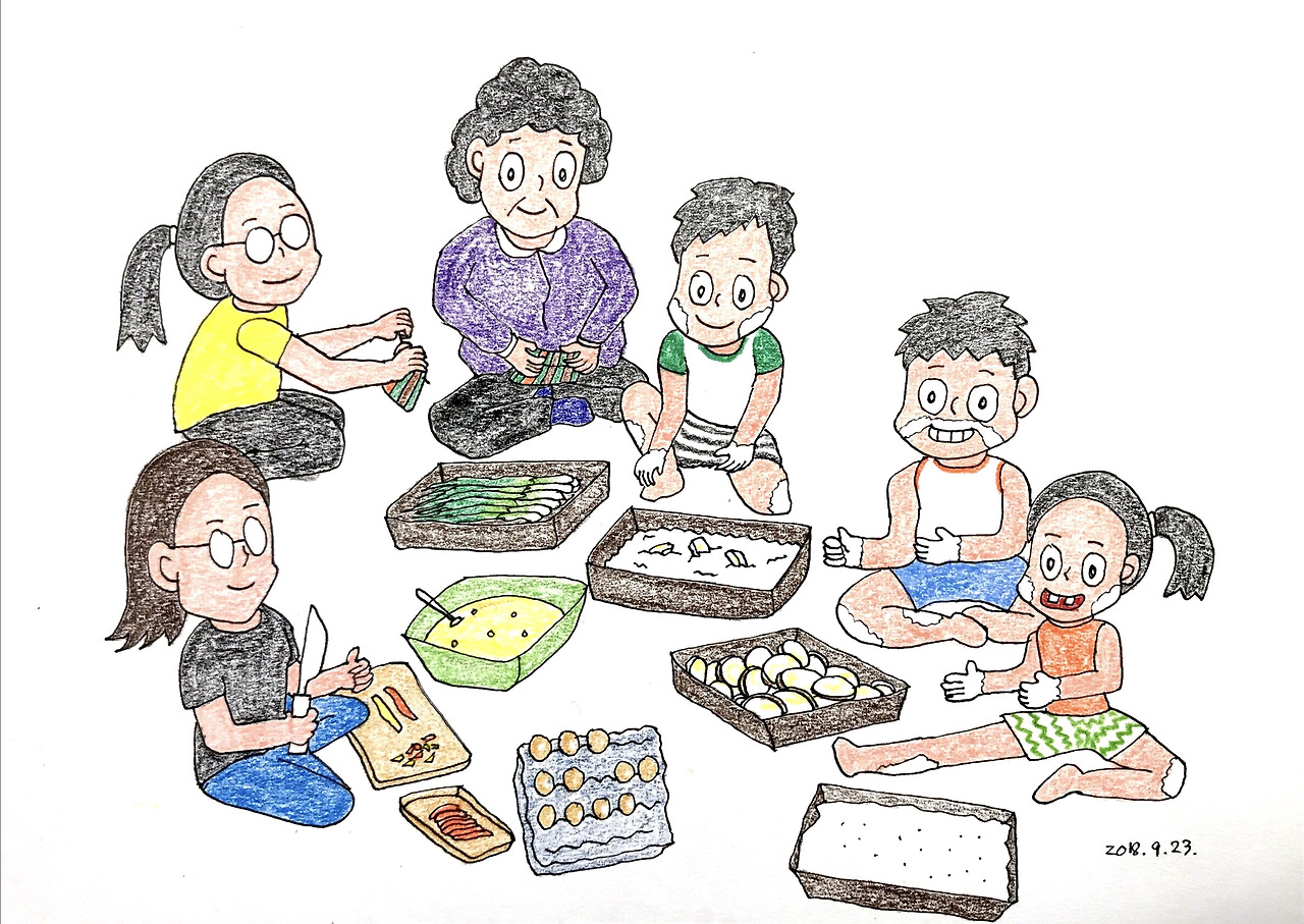 하얀 튀김가루를 묻혀가며 튀김 옷 입히는 일이 즐겁다.
