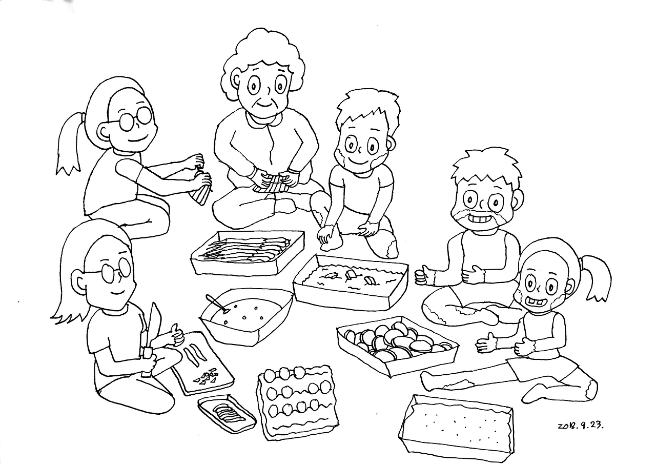 올해 부쩍 한 사람 몫을 해내는 윤이는 “아이고, 허리야! 아... 다리야!” 하며 열심히 일한 티를 팍팍 낸다. 윤이가 꽂아놓은 산적을 보니 피식 웃음이 난다.
