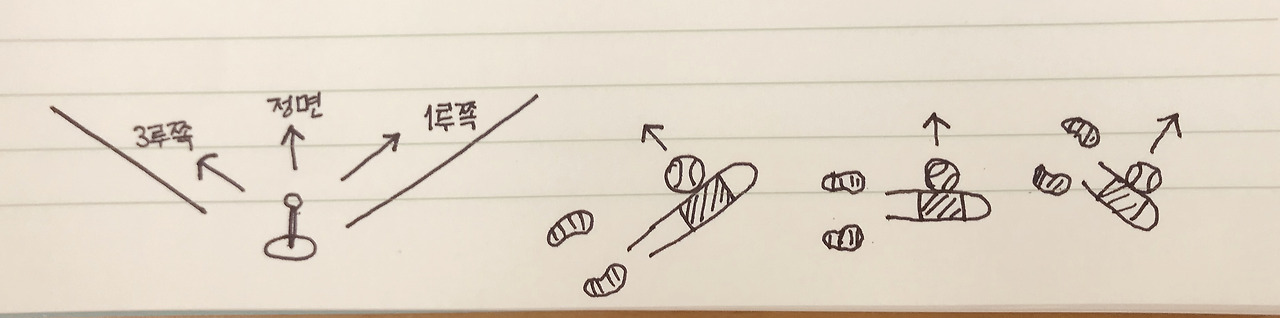 - 우타자는 그 선에 왼발을 올리고, 좌타자는 그 선에 오른발을 올리고 선다.