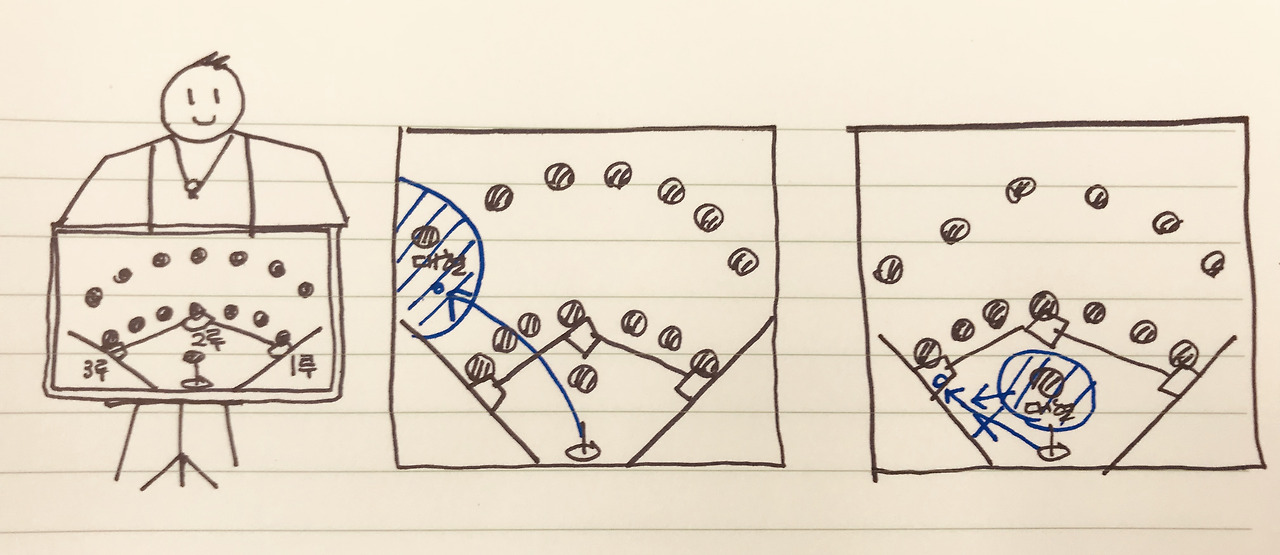 (이렇게 위치를 정하고 들어가면 확실히 수비의 위치가 좋아져 있다. 나름 자기 자리에 대한 책임감도 가지게 된다.)