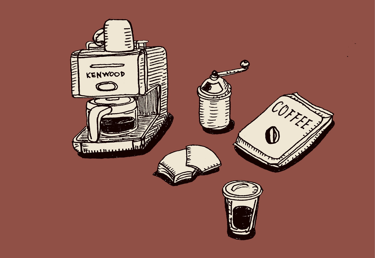 물을 경계선까지 붓고 뚜껑 닫아 커피메이커의 스위치를 누르면...