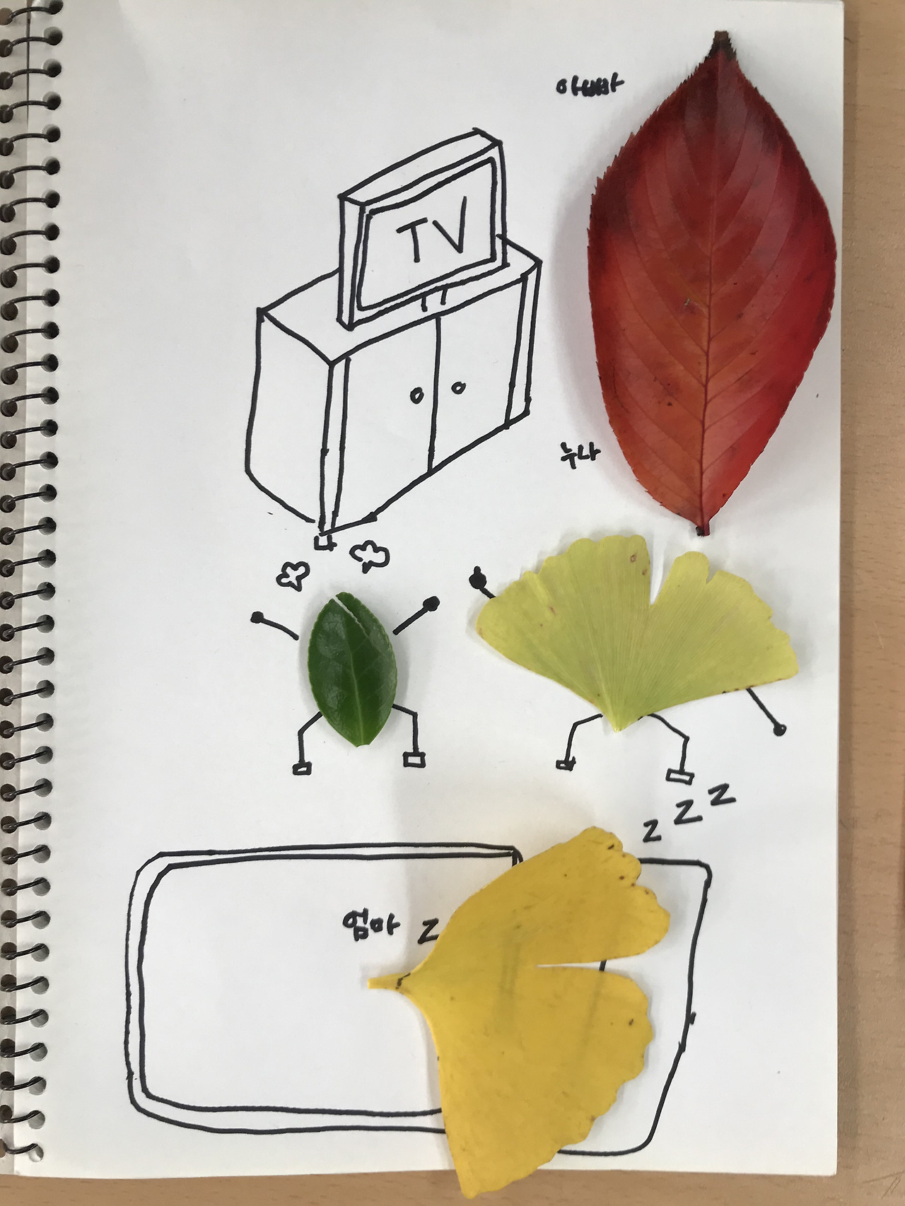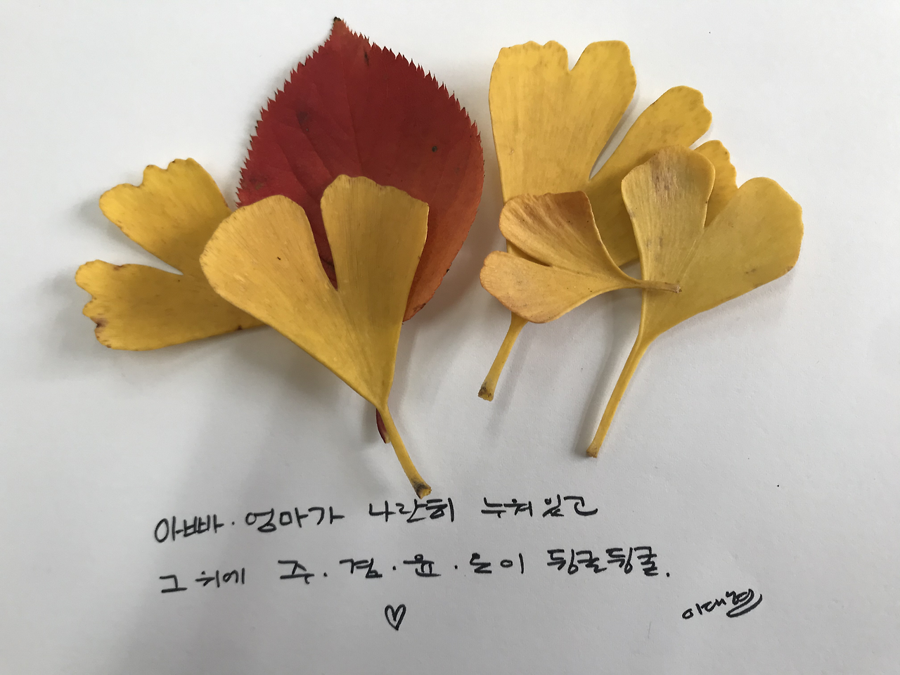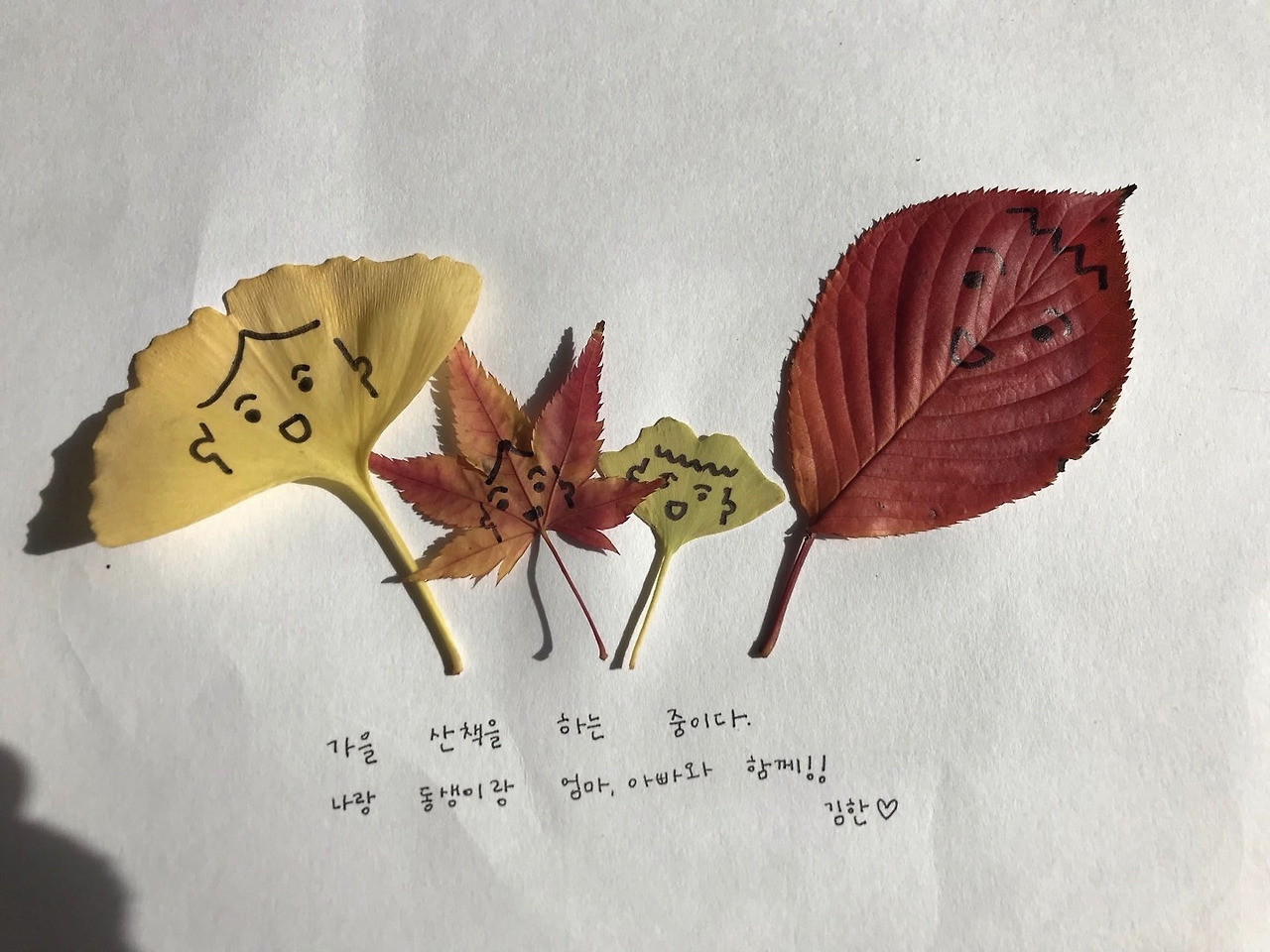 - 우리 가족이랑 닮은 낙엽을 줍는 거야.
