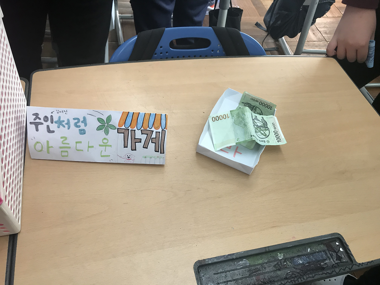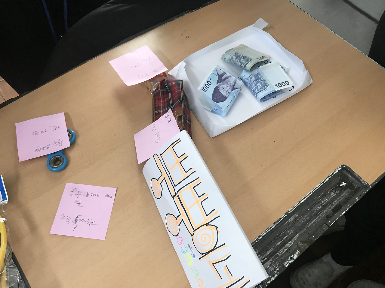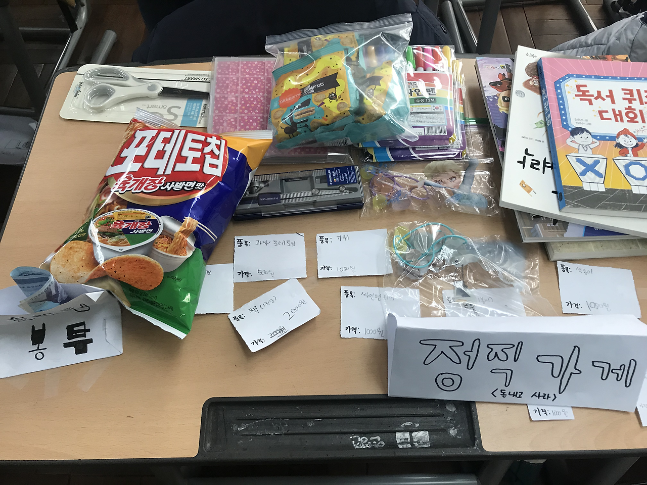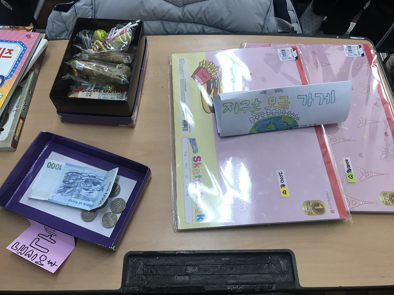 각자 준비한 물품과 자신이 정한 가게 간판, 무인계산대를 만들어 가게를 꾸민다.