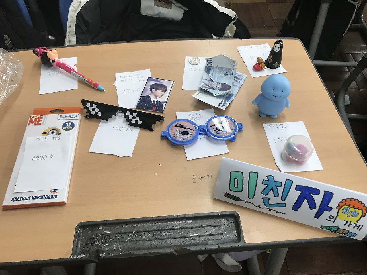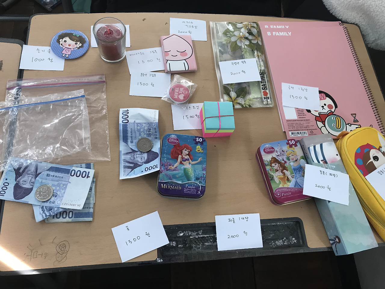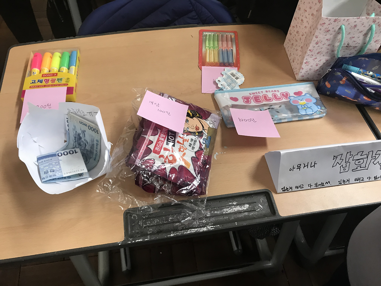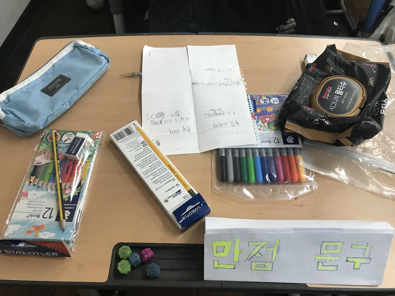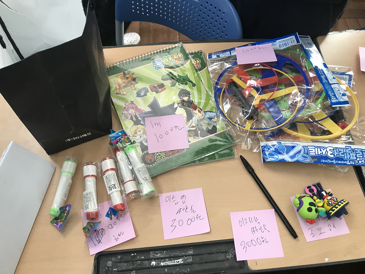 각자 준비한 물품과 자신이 정한 가게 간판, 무인계산대를 만들어 가게를 꾸민다.