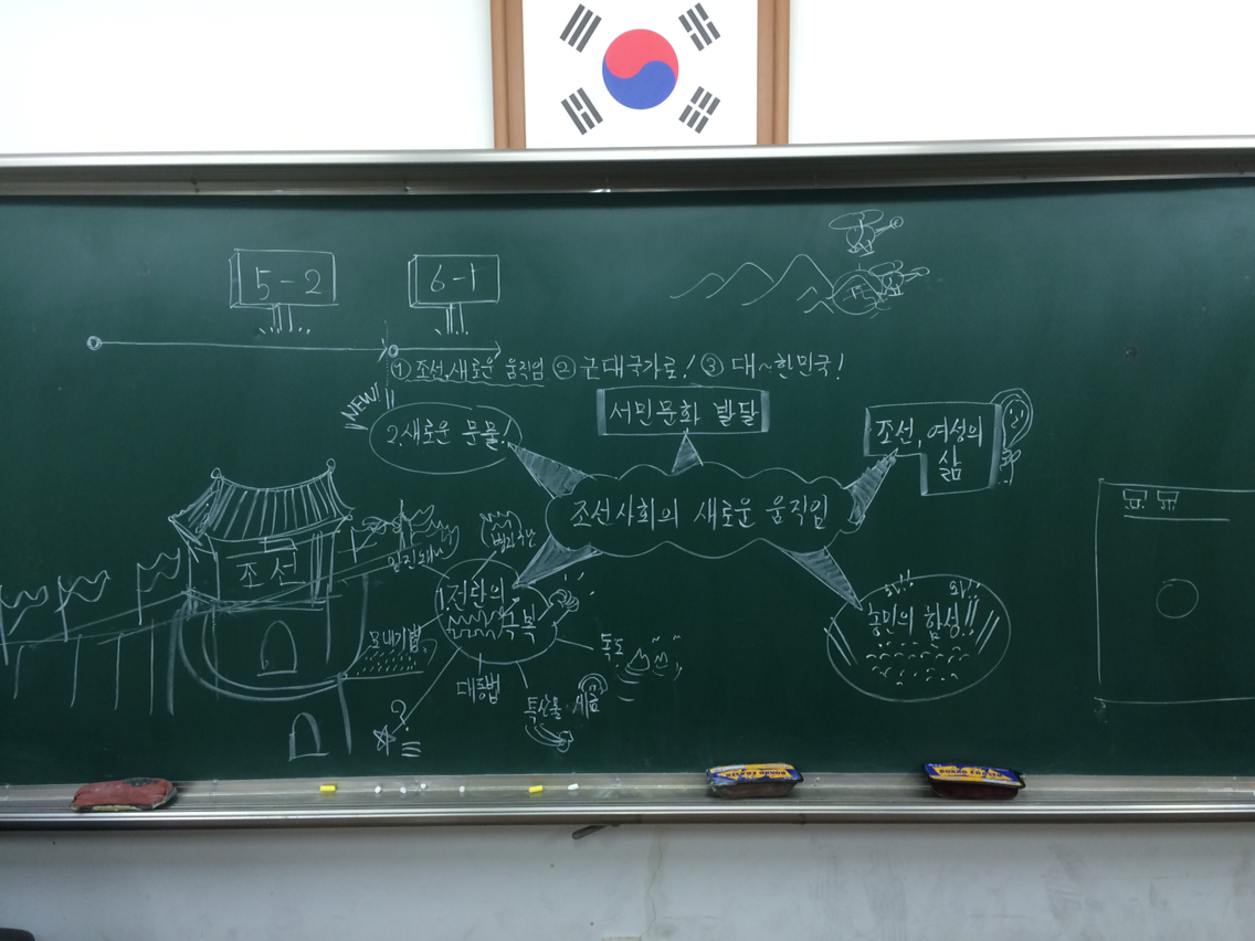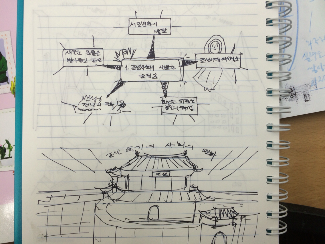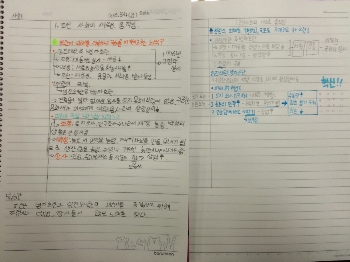 # 마침 작년 제자들(지금은 다른 반, 그 반은 공책정리를 하지 않음) 둘이 와서 자기들은 수업시간에 공책정리를 스스로 한다고 해서 공책을 가져와보라 해서 보니 참 뿌듯했다. 사진을 찍어 아이들에게 소개. 아이들은 자신만의 엔진을 달고 가는 중이라고 이야기해 줌.