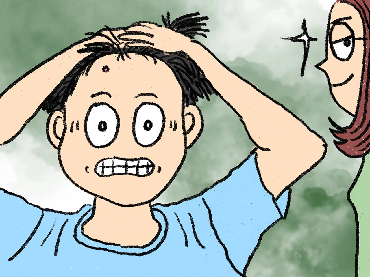아빠 : 그거 짠다고 만지고 그러면 덧나고 얼굴에 구멍 생긴데이. 아빠처럼.