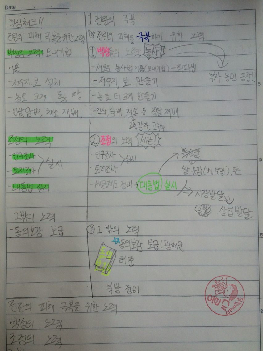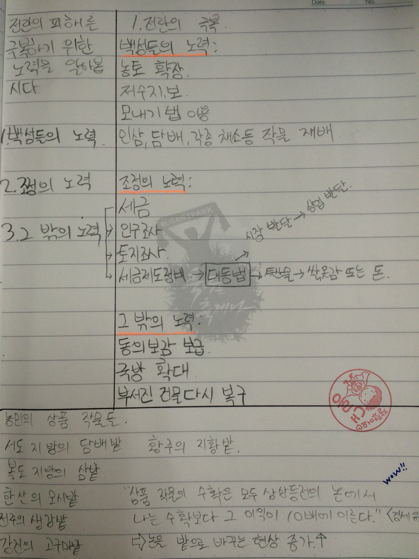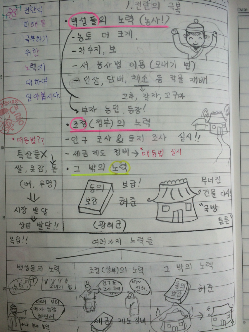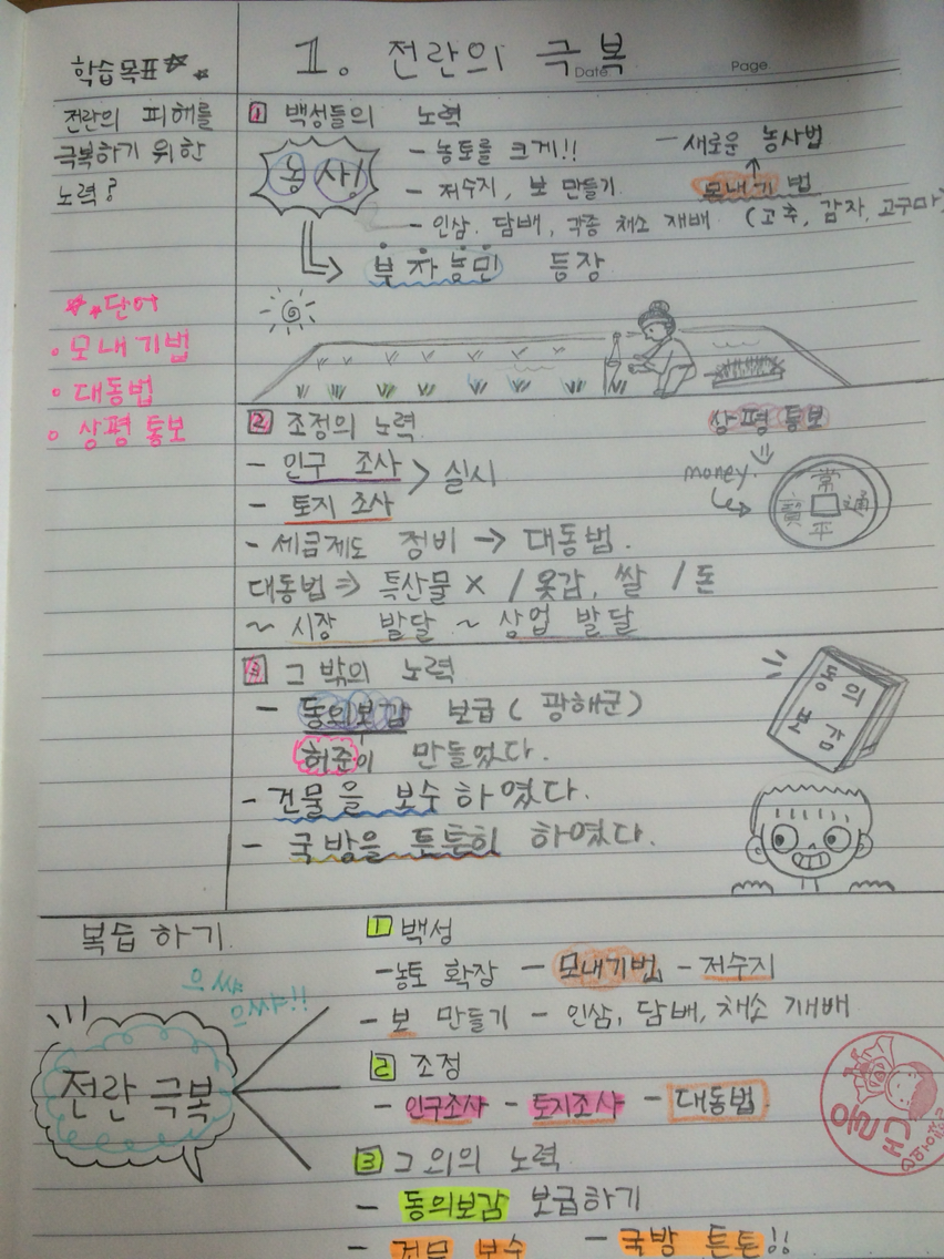 # 학습문제 제시 - 전란의 피해를 극복하기 위한 노력? (판서)
