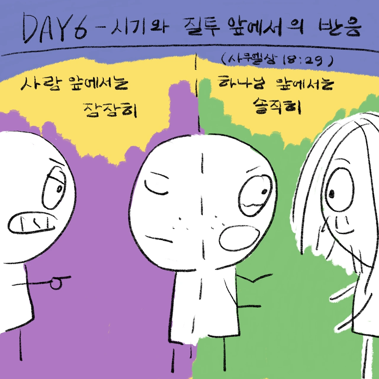 사람 앞에서는 ‘하나님이 하실 거야.’하는 믿음으로 잠잠하게, 하나님 앞에서는 솔직하게 내 마음을 털어놓고 하나님의 일하심을 기대하며 기다리는 삶의 태도를 배워야 하겠다.