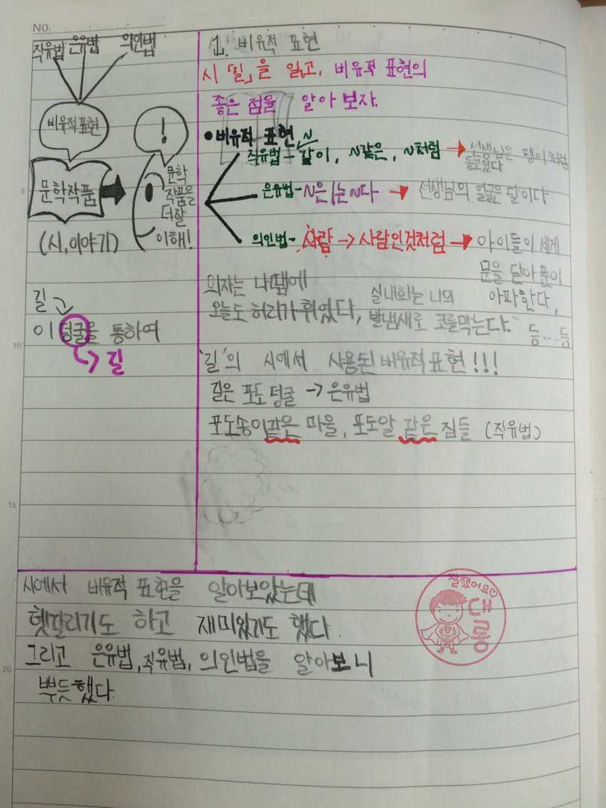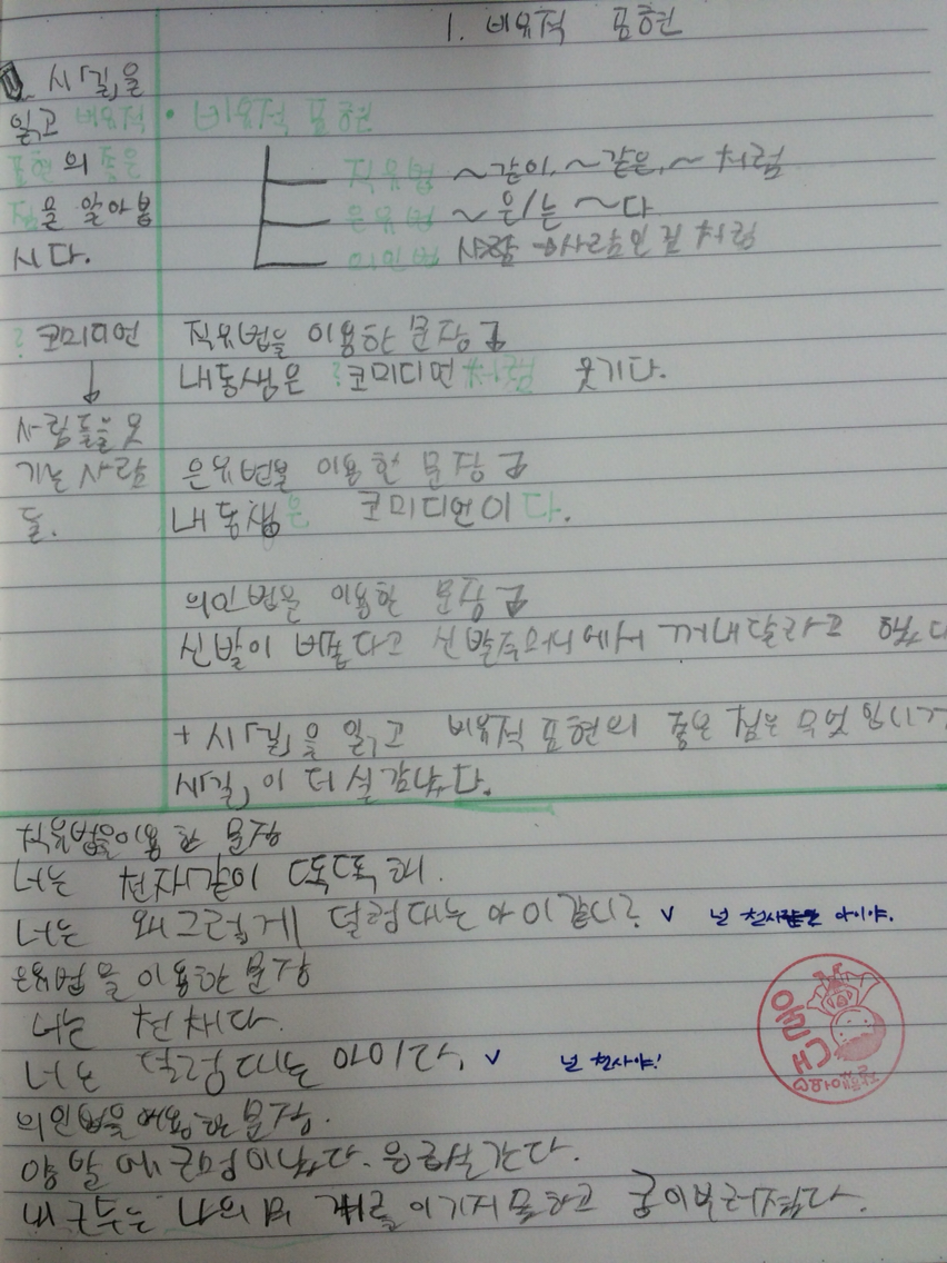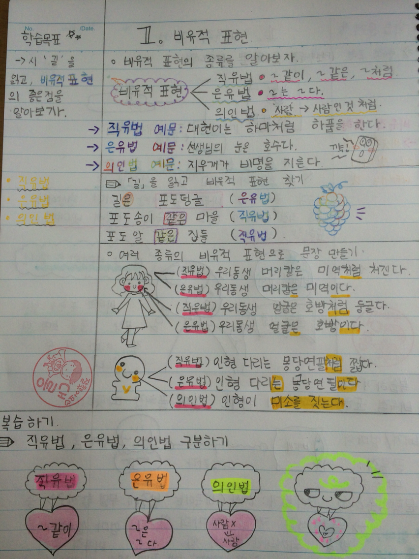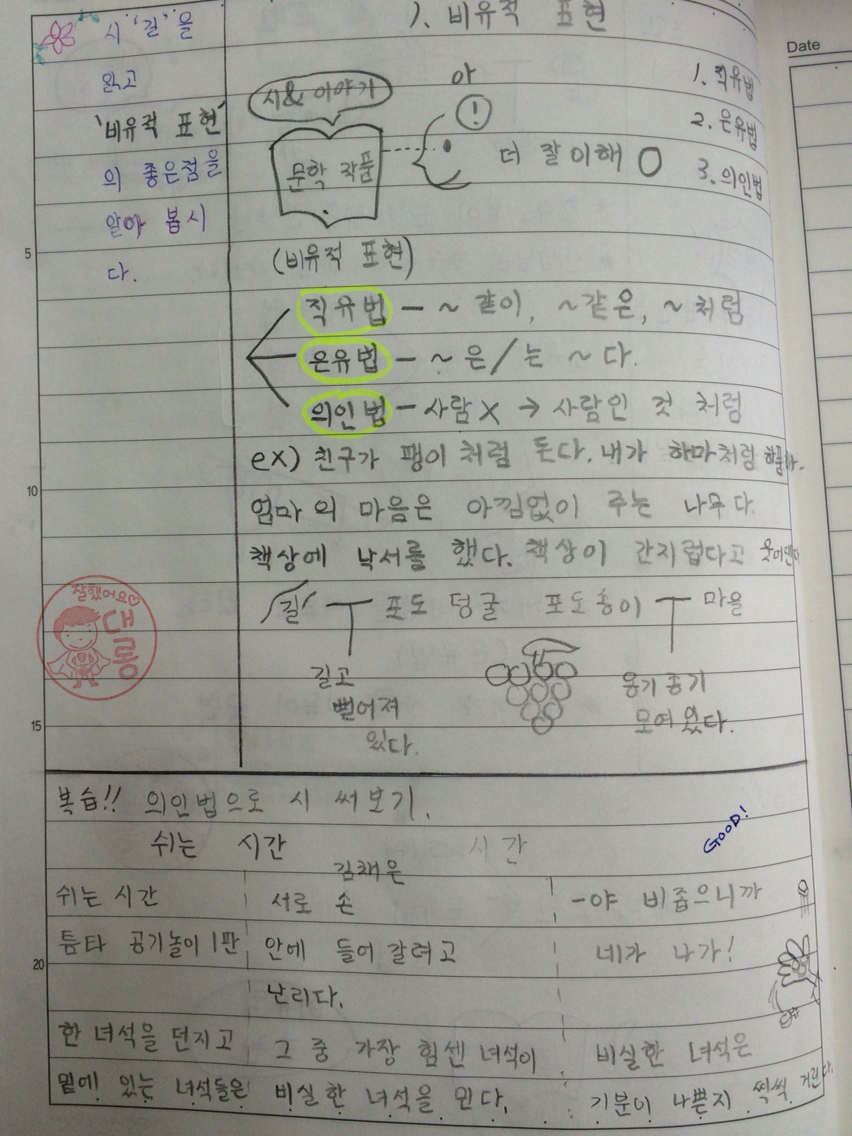 시가 끝나고 나면 이야기에서 비유적 표현을 찾아보는 활동이 나온다.