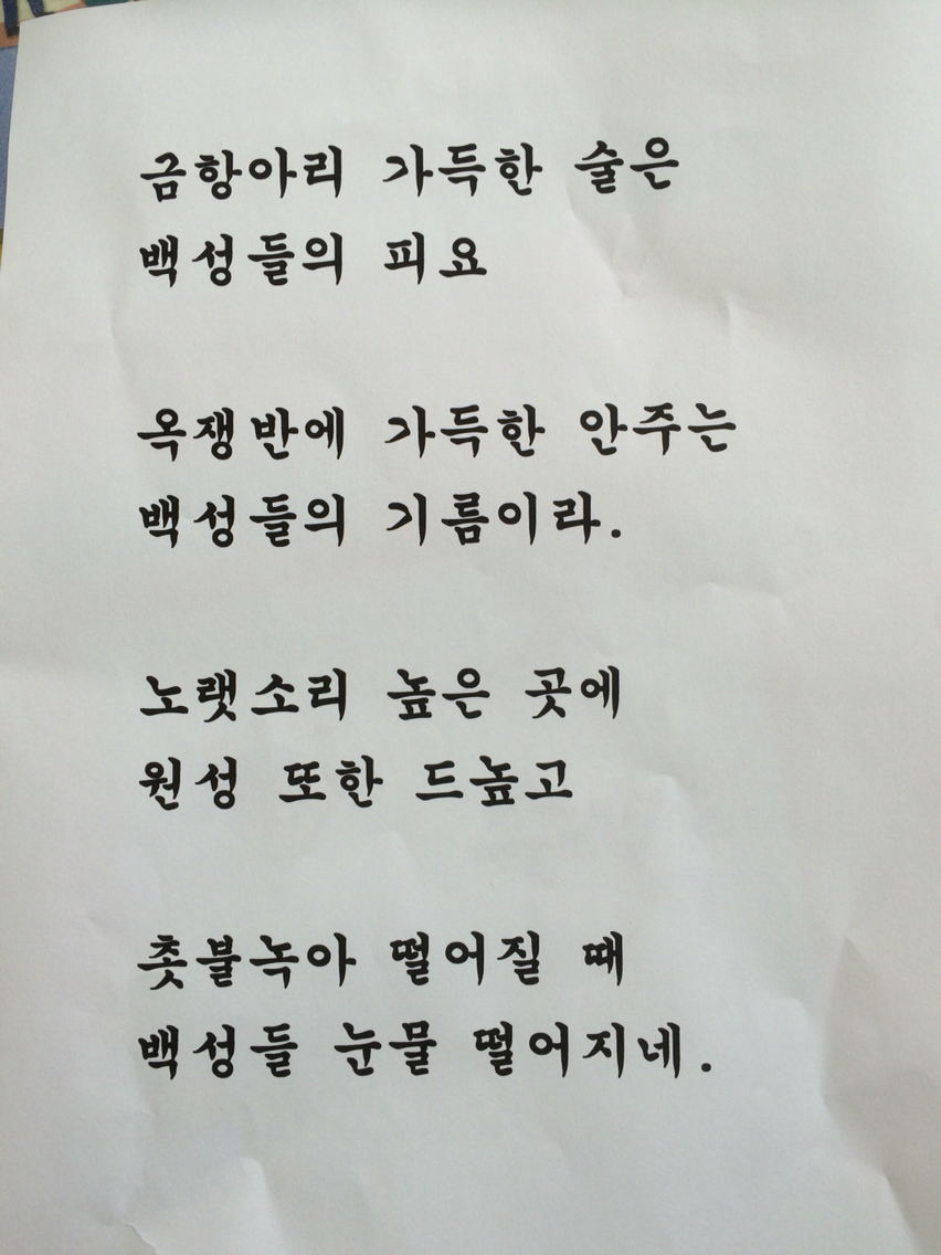 - 그리고는 우리는 양반이니 시나 지으며 놀자고 제안을 하고, 아이들에게 즉흥적으로 시를 지으라 한다. 아이들은 주로 앞의 변사또를 꼬집는 내용으로 재미나게 이야기한다.