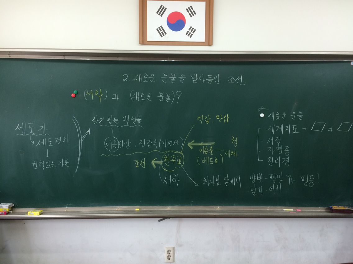 이렇게 서학에 대해 간단히 소개하고나니 시간이 좀 부족해 새로운 문물은 메모만 하고 다음 시간에 공부하자 했다.