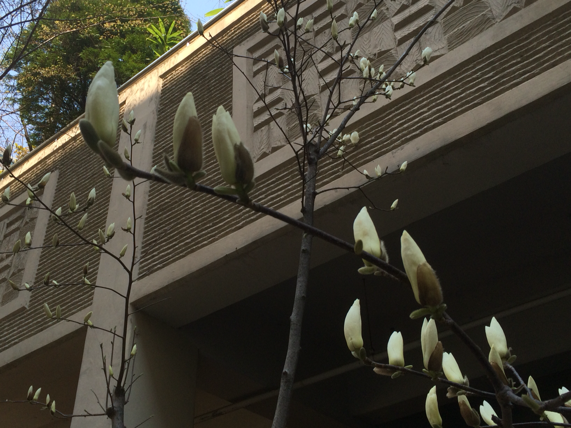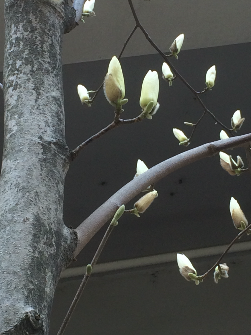 - 도착. 목련을 함께 본다. 아직 활짝 피진 않았다. 알을 깨고 흰 부리가 조금씩 나오고 있다.