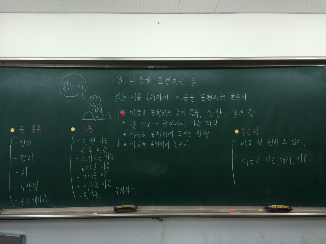 - 이번 시간에 마음을 표현하는 글의 종류와 마음을 표현해야 하는 상황, 그리고 그렇게 글을 쓰면 좋은 점을 살펴보자.