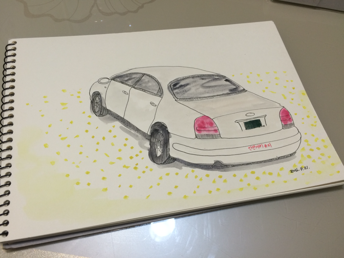 차를 처음 샀을 때, 개인택시를 운전하셨던 아버지는 개인택시 뒤에 붙이는 '안전거리유지' 스티커를 우리 차 뒤에 붙여주셨다.