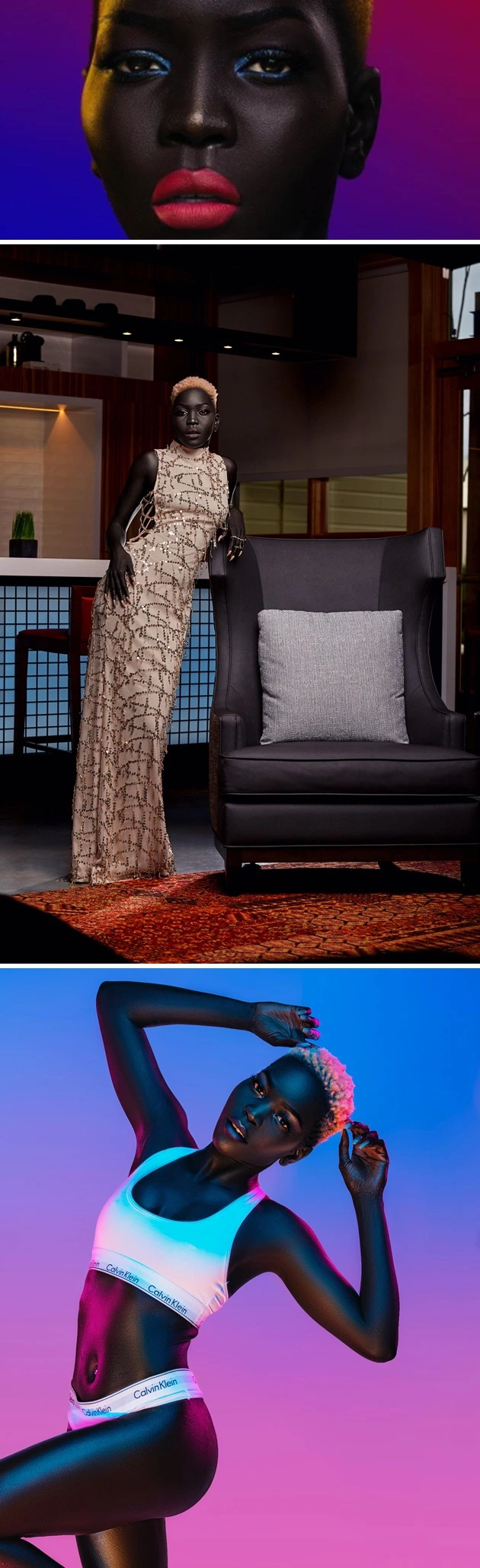 니아킴 개트윅은 남수단에서 태어났으며 '어둠의 여왕(Queen of Dark)'이라는 별명을 가지고 있는 모델입니다. 개트윅은 인스타그램을 통해 자신의 피부색을 포함해 자기 자신을 사랑하자는 메시지를 끊임없이 전하고 있습니다. 또한 패션 업계의 다양성을 지지하며 전 세계의 흑인 권리를 대변하는 당당한 여성입니다.