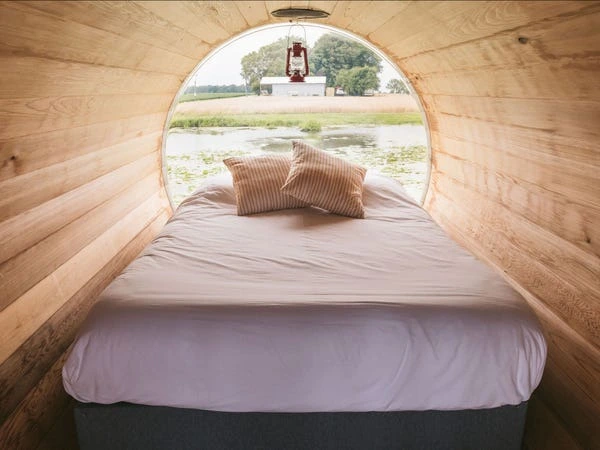 캐나다의 에섹스에 위치한 한 에어비앤비의 모습입니다. 이 숙소는 커다란 와인 저장통 모양을 하고 있는데요. 물 위에 떠 있어 색다른 느낌을 자아낸다고 합니다. 이 숙소의 이름은 폭스 크릭(Fox Creek)인데요. 이 숙소의 테마처럼 이곳은 포도밭으로 둘러싸여 있는 곳이죠.