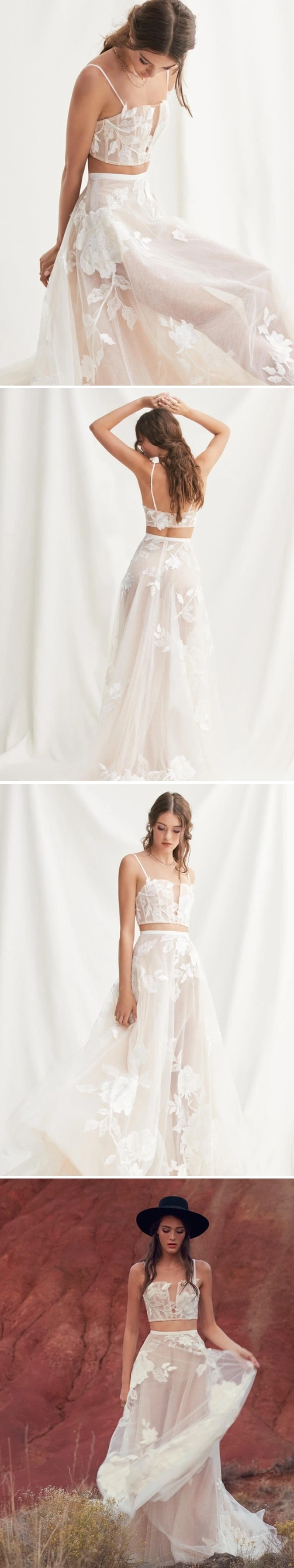 Catherine Deane도 Bridal Separates라고 불리는 웨딩 투피스를 다양하게 내놓는 브랜드 중의 하나입니다. 2019년에는 캐미솔 형태의 탑을 여러 종류로 선보였으며 반응이 뜨겁습니다.