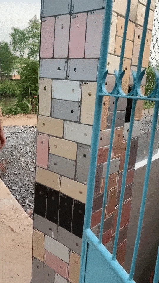 사진 이후에는 틱톡 영상이 다시 한번 화제가 되었는데요. 한 남성이 아이폰을 한 무더기 쌓아두고 시멘트를 발라 아이폰을 담장에 직접 붙이고 있는 영상이었죠. 그는 하나하나 열을 맞춰 수 백 개는 되어 보이는 아이폰을 담장에 붙이고 있는데요. 작업이 매우 고되 보이지만 묵묵히 담장을 꾸미고 있네요.