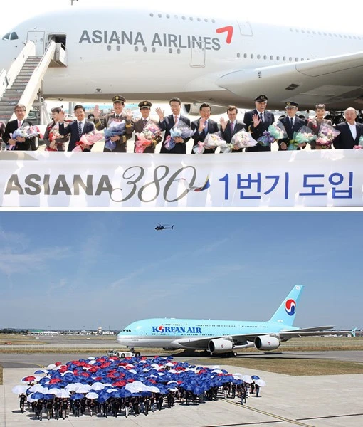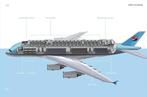 A380은 세계 비행기 제작 회사의 양대 산맥 중 하나인 '에어버스'에서 만들어내는 가장 큰 비행기 기종입니다. 2층으로 구성된 객실에 퍼스트, 비즈니스, 이코노미석으로 좌석을 배치할 경우 555석을, 전체를 이코노미석으로만 배치할 경우 853석을 마련할 수 있는 초대형 항공기입니다. 각 나라별 대표 항공사들은 보통 A380을 보유하고 있으며 우리나라의 대한항공, 아시아나에서도 보유하고 있습니다.